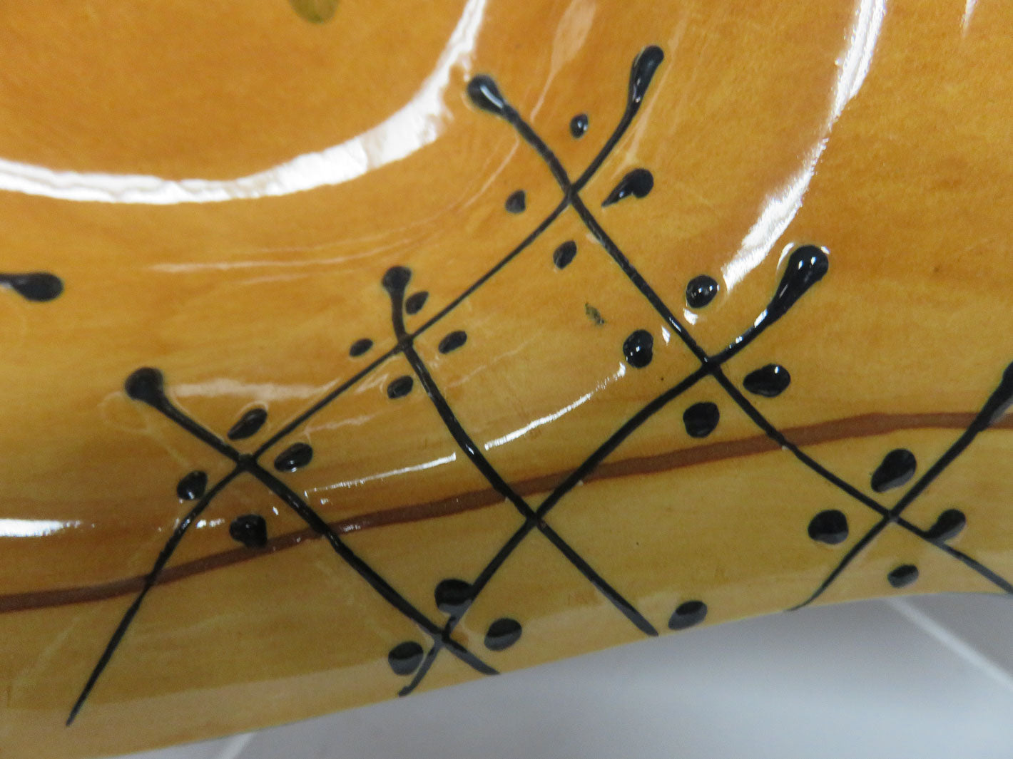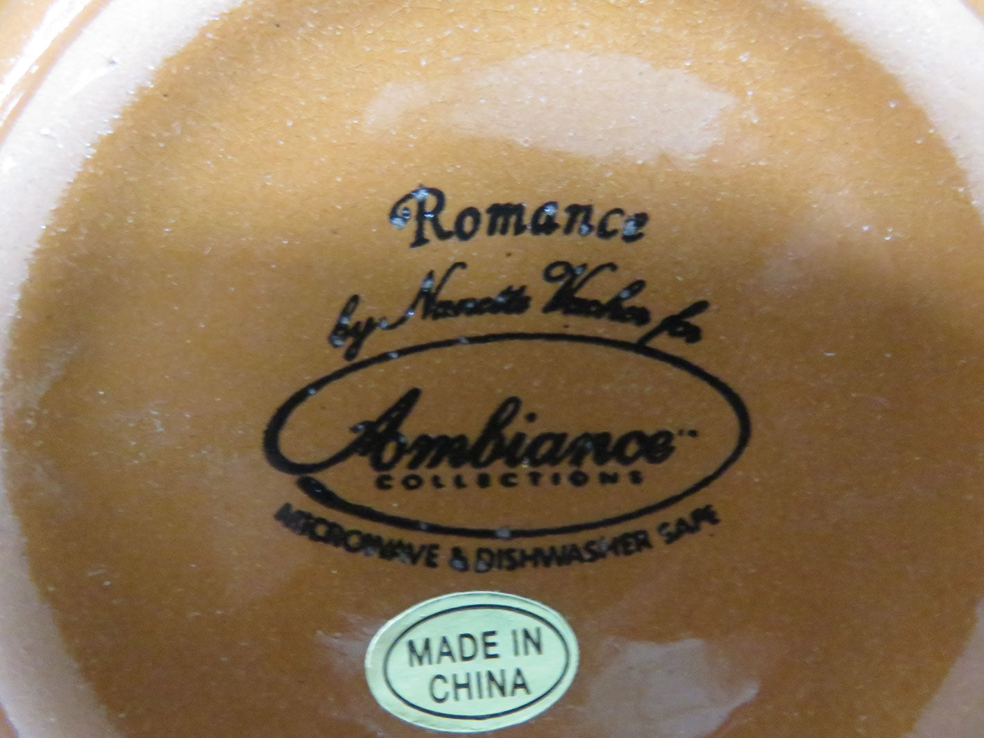 Romance by Ambiance hand painted, terra cotta color with red round center bowl.