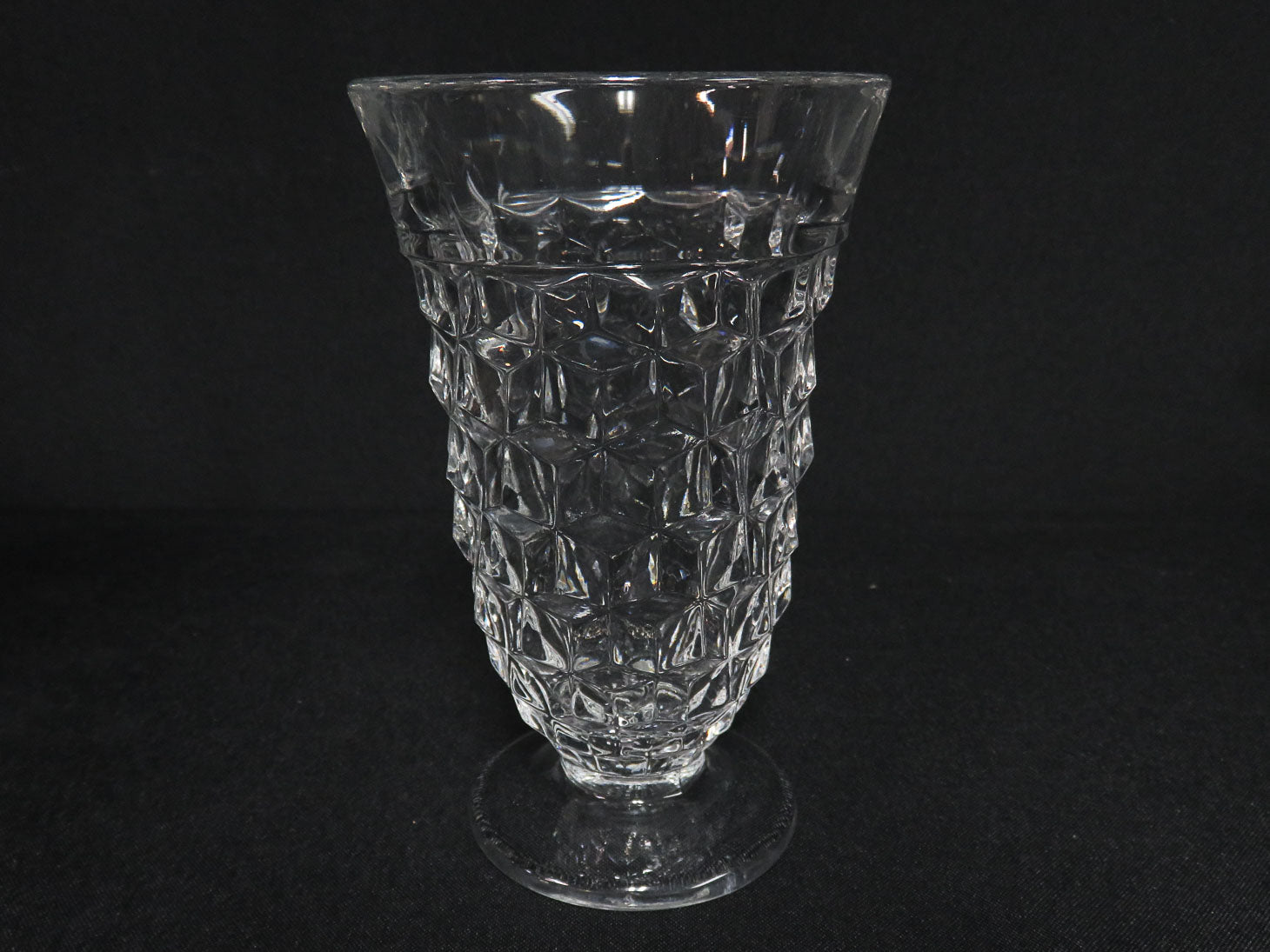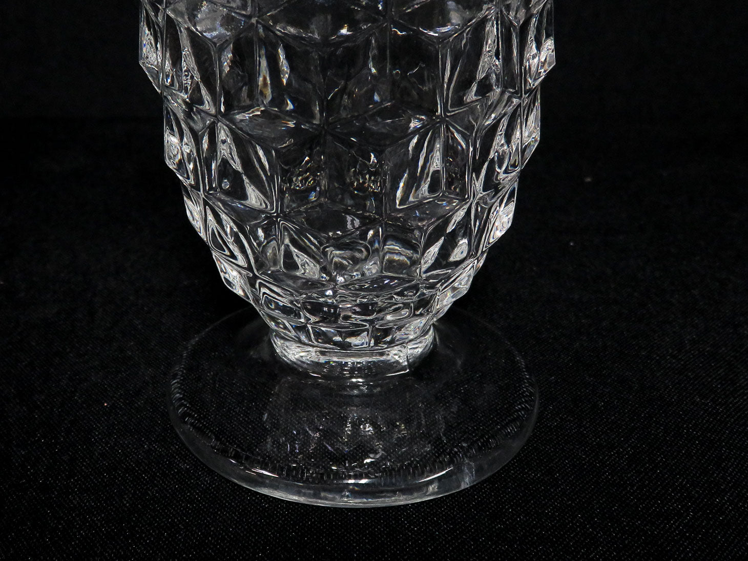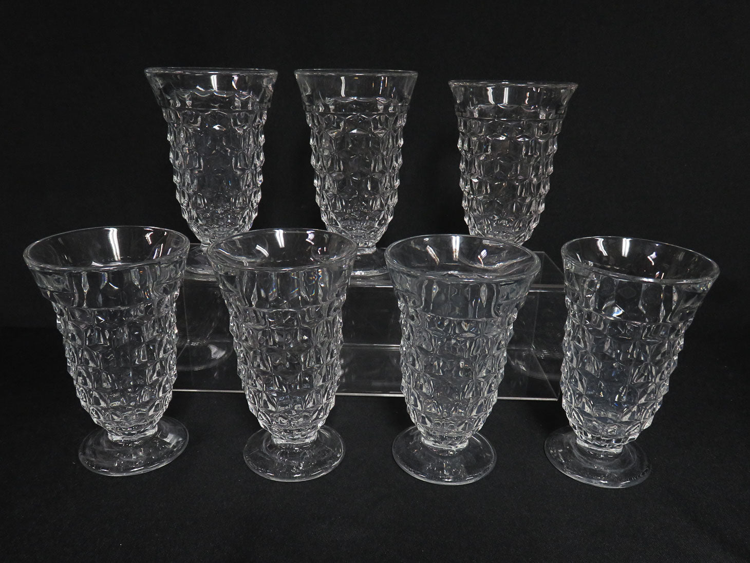 Item Number: 29591-10 Set of 7, clear, faceted, stems. American pattern featuring a honeycomb design. 5.75" H