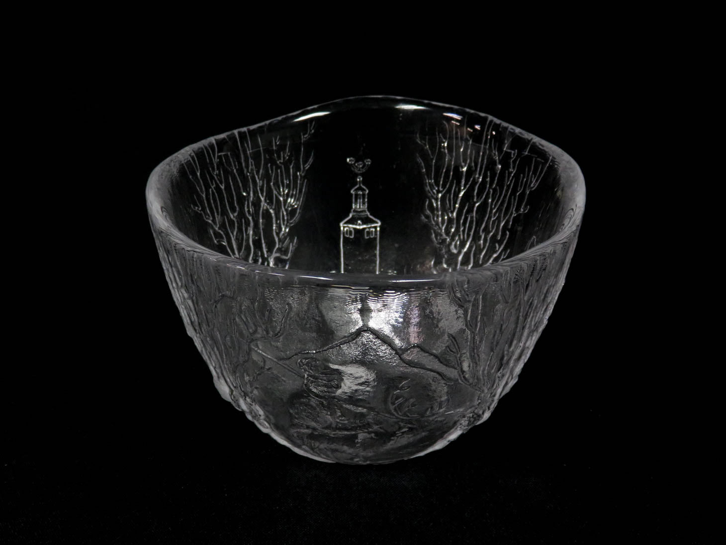 "Imagery" Textured glass with Swedish images. Irregular rim.