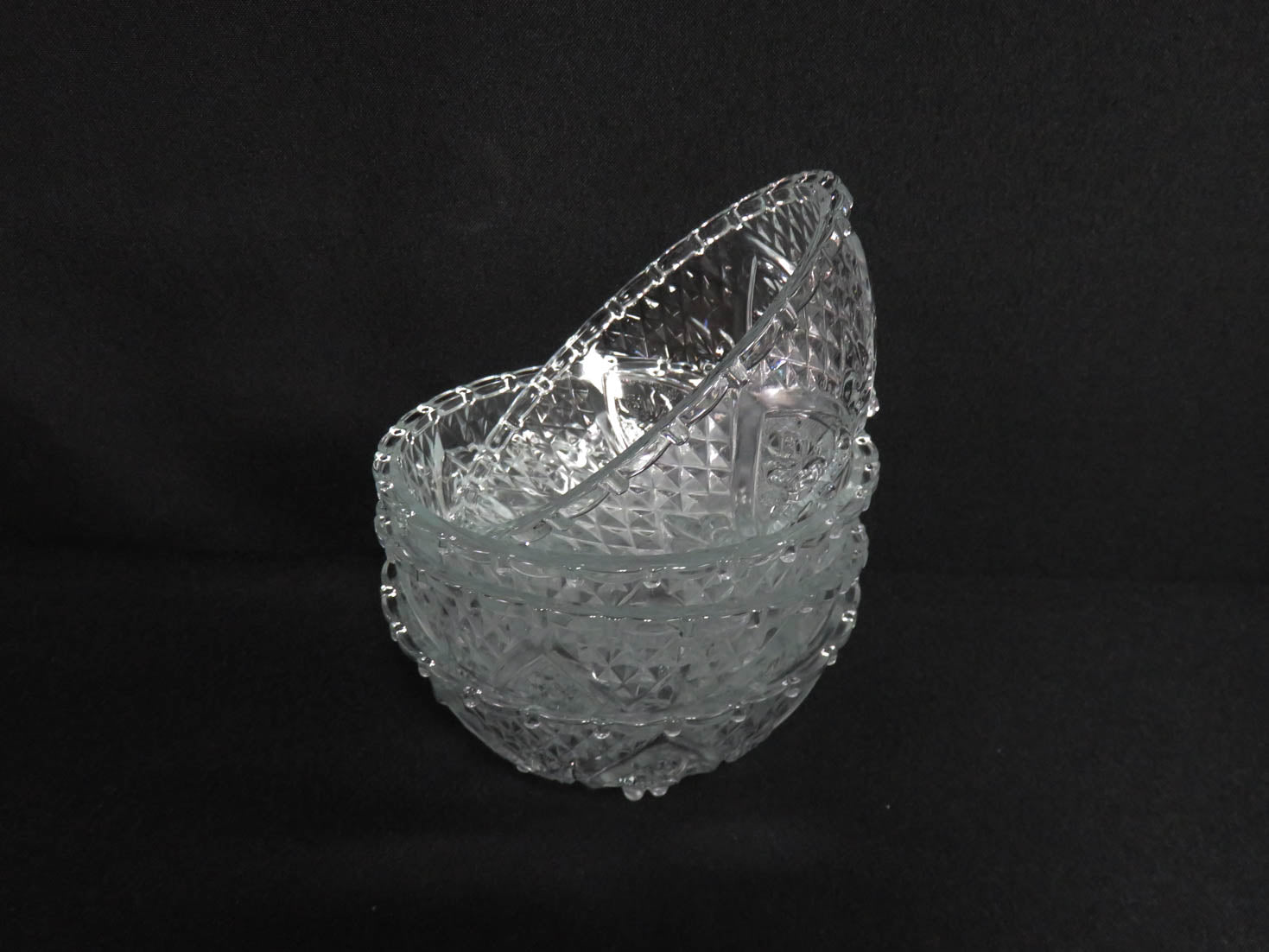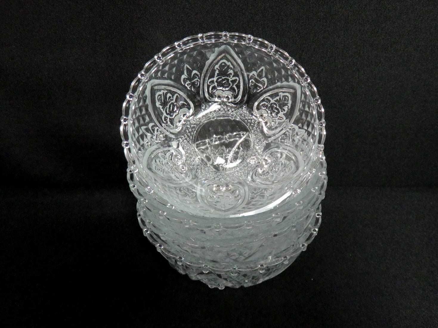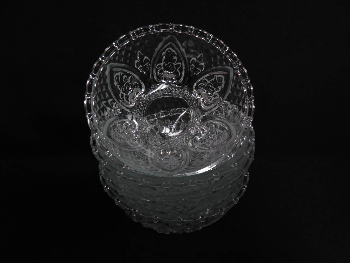 Set of 4, diamond cut with etched flowers and fluer-de-lis design.