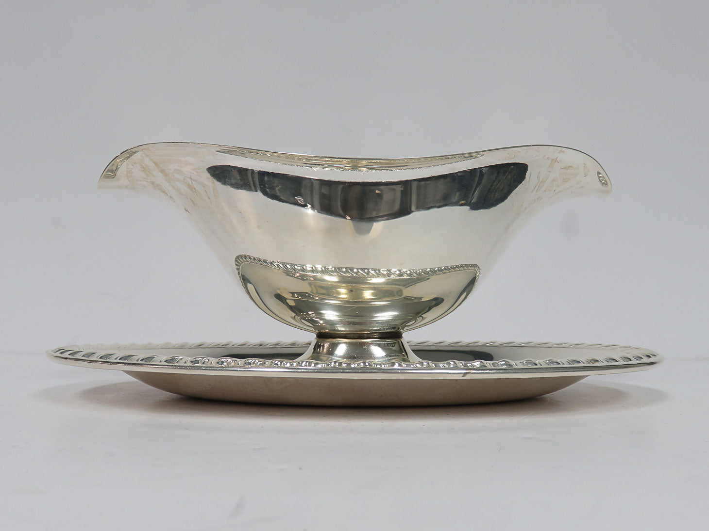 Silver plate, attached underplate, double spout