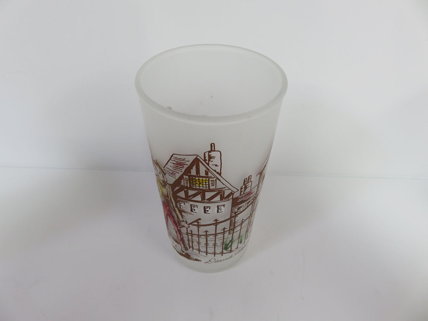 Item Number: 20466-676 Set of 8, frosted glass tumblers of various designs from Charles Dickens Series. 5.5" H