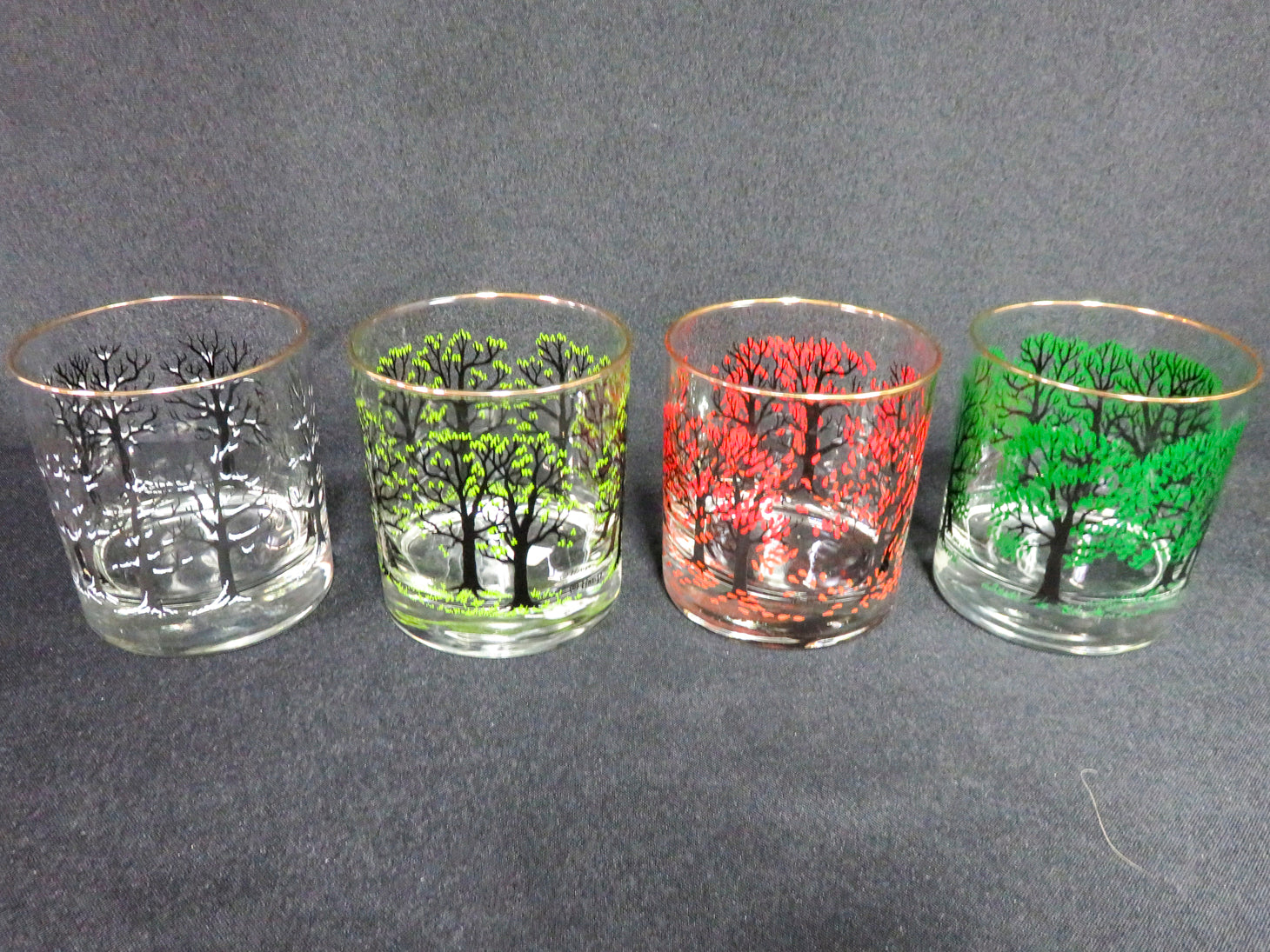 Set of 4, four seasons of trees in various colors with gold rim