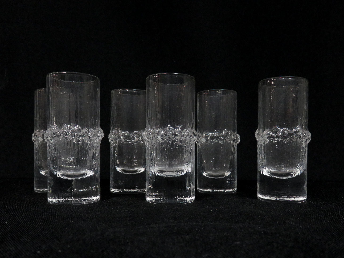 Set of 6, "Niva by Tapio Wirkkala, icy finish with nubbly center band.