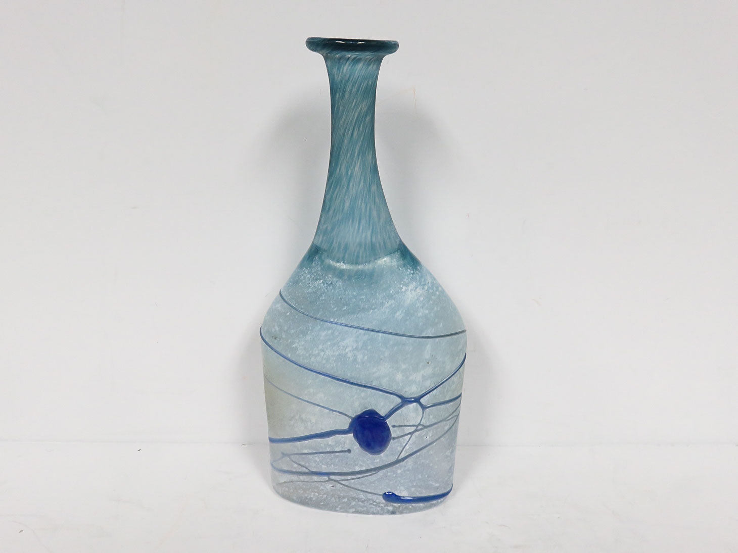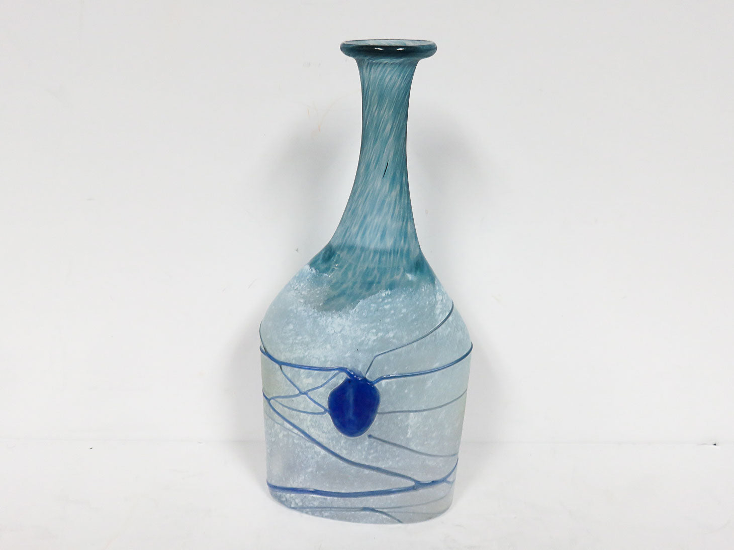 Bertil Vallien Galaxy, Blue icy finish, abstract cobalt swirl, thin neck 8" H