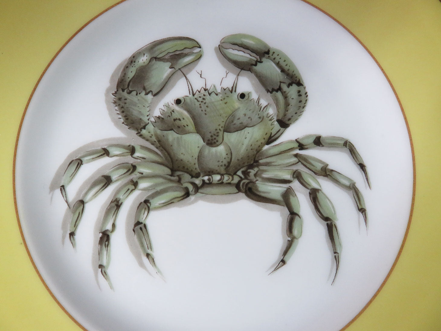 Set of 7 "Fruits of the Sea", round, yellow rim with various crustaceans
