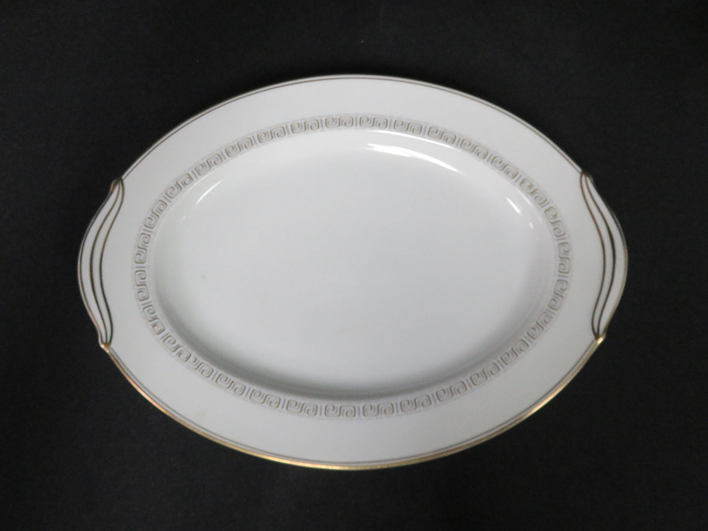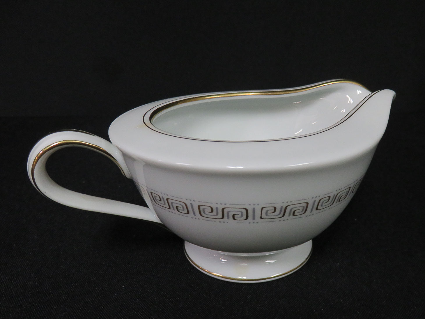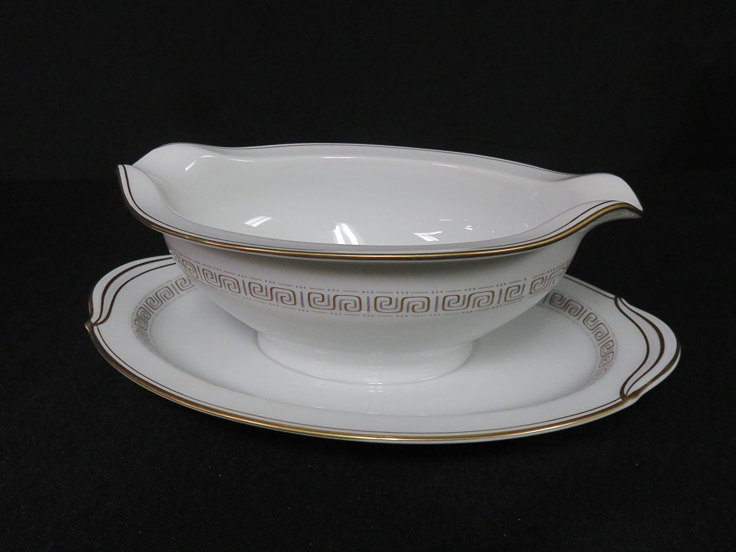 "Athena" white with gold and gray geometric pattern, thin gold rim 8221