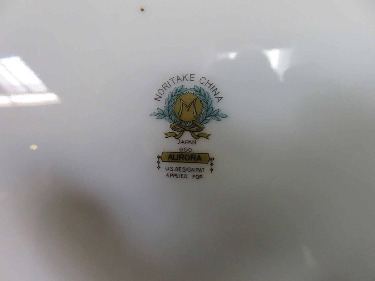 Large, oval "Aurora" pattern. Pale yellow border with floral accents. Gilt rim. Discontinued.