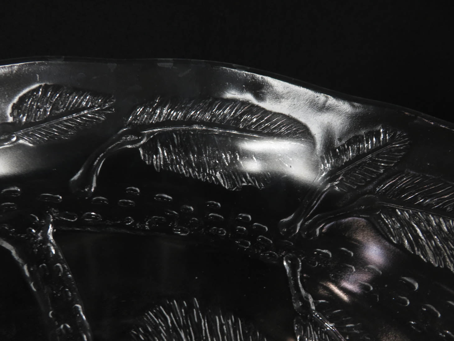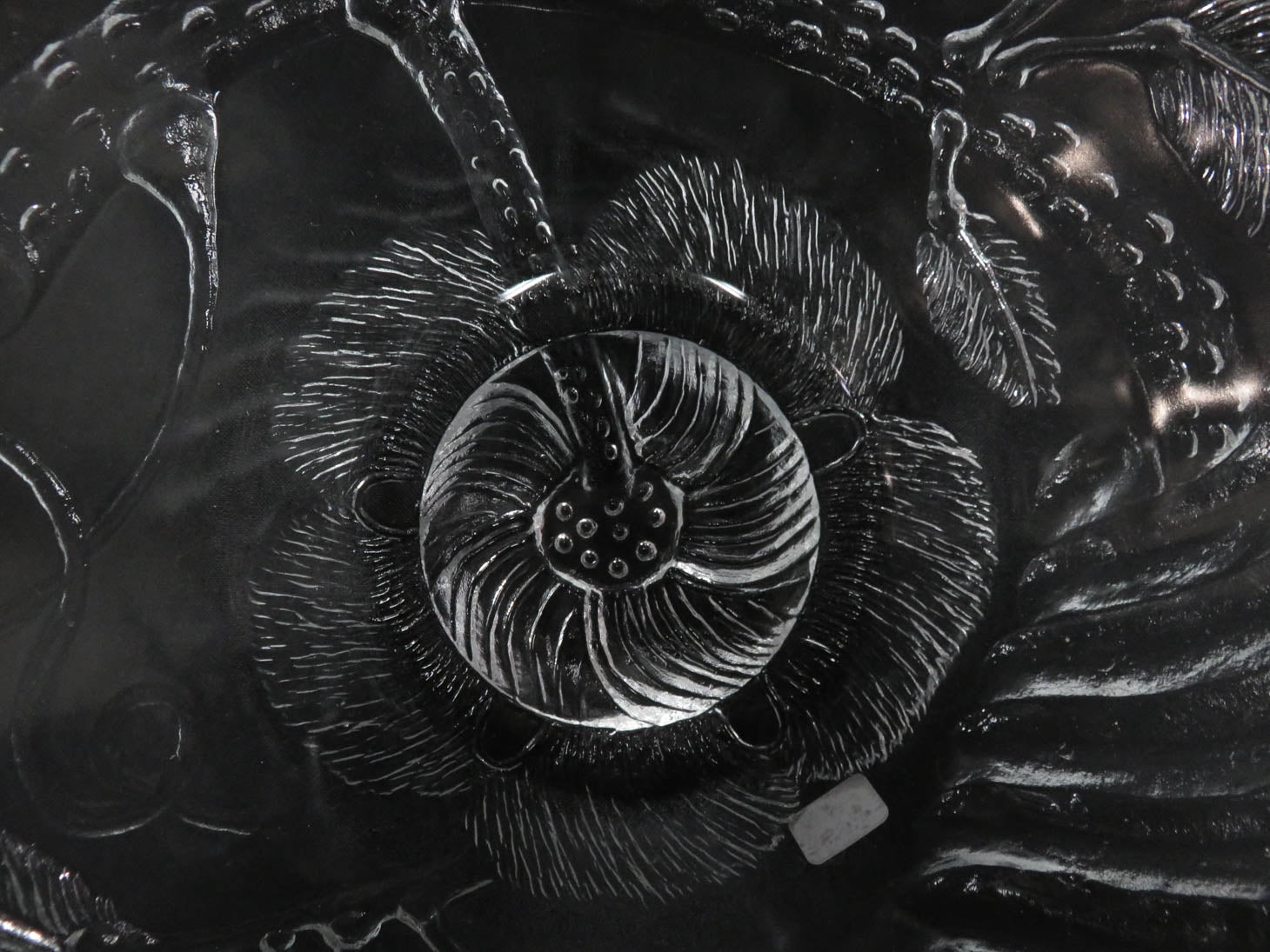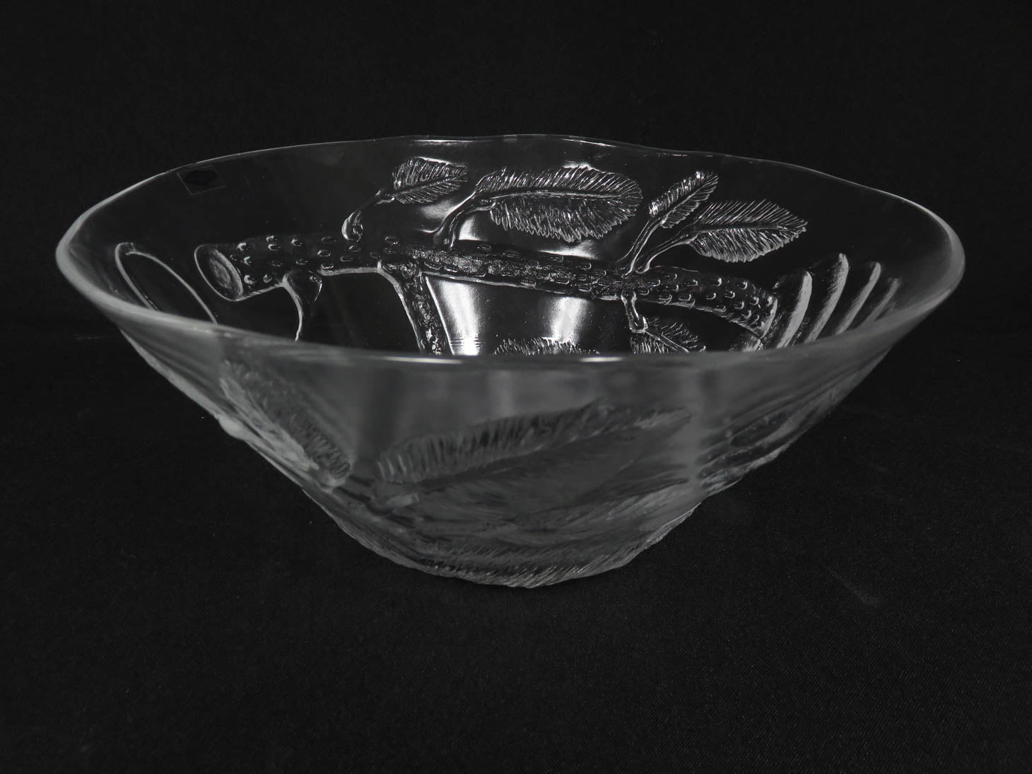 Item Number: 8174-388 Round, clear with branch & leaf design and floral center. Soft scalloped edge. 10.25" x 4.25"