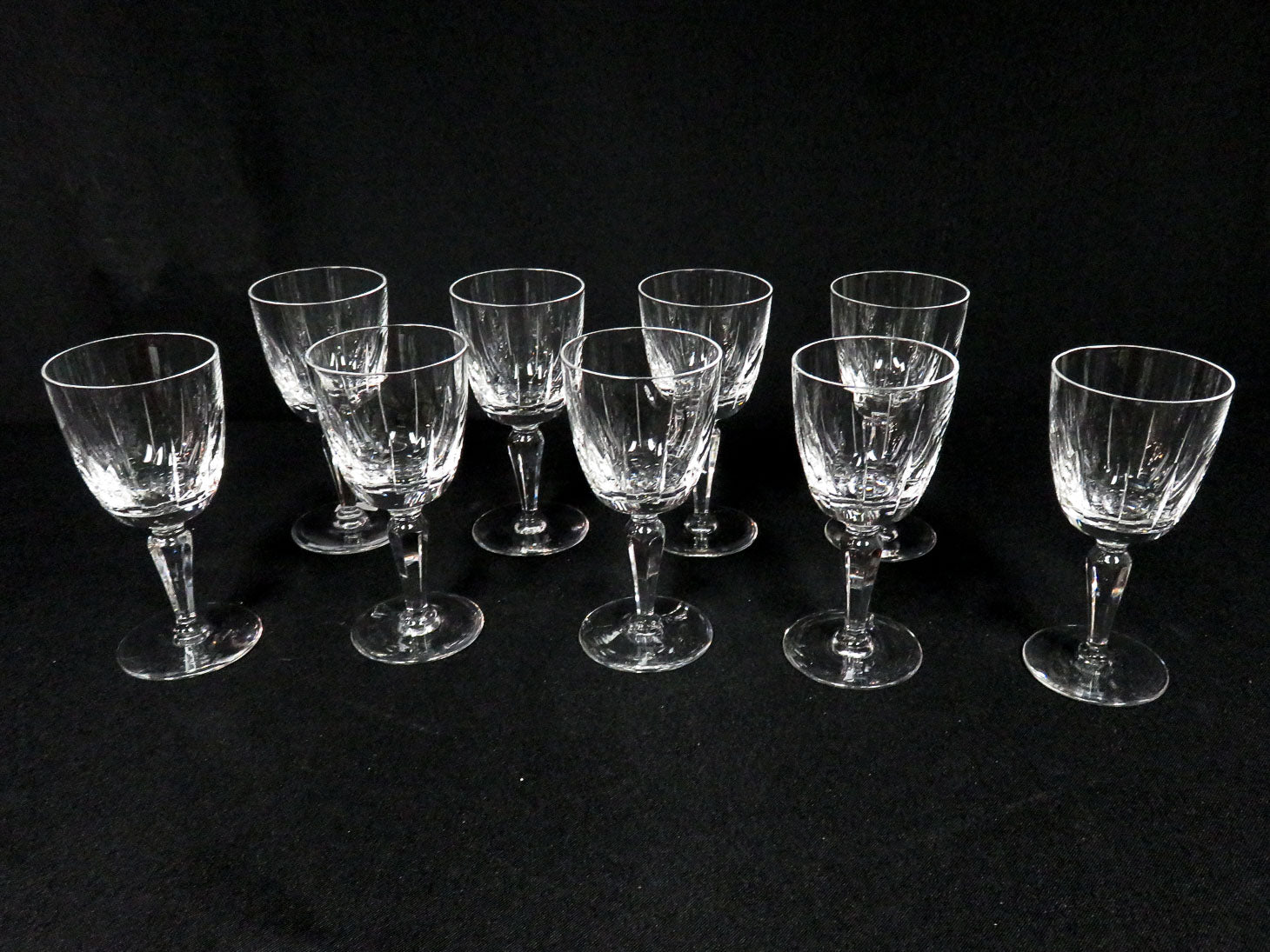 Set of 9, "Charlotte" stemmed with wedge cuts