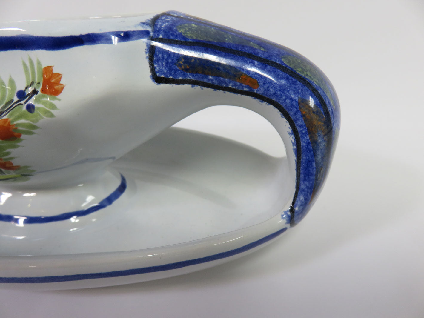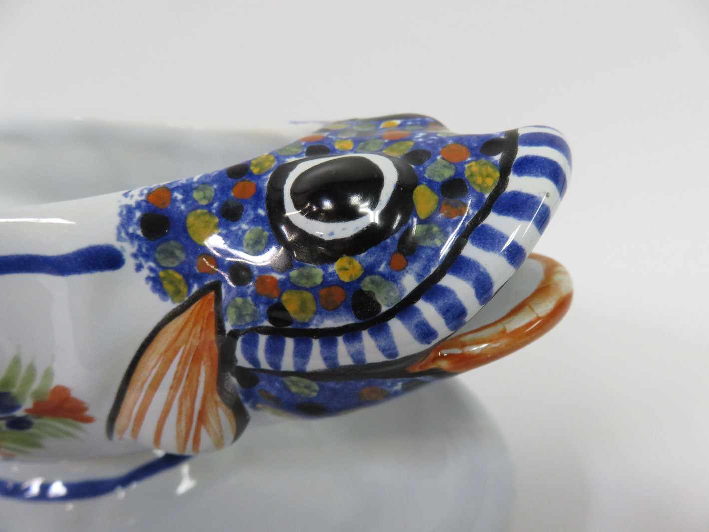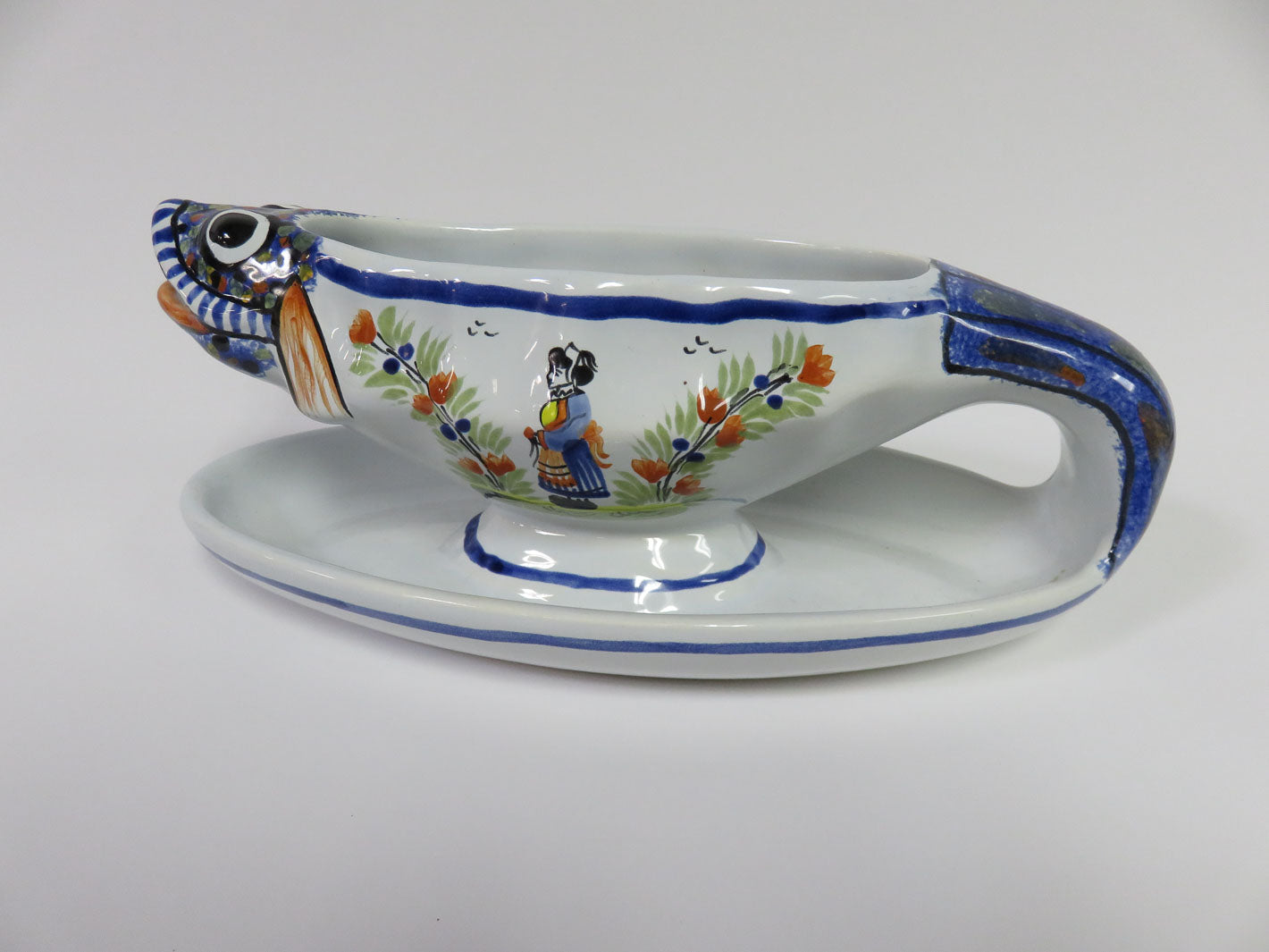 Woman in blue dress, laurel trim, hand-painted with fish head spout.