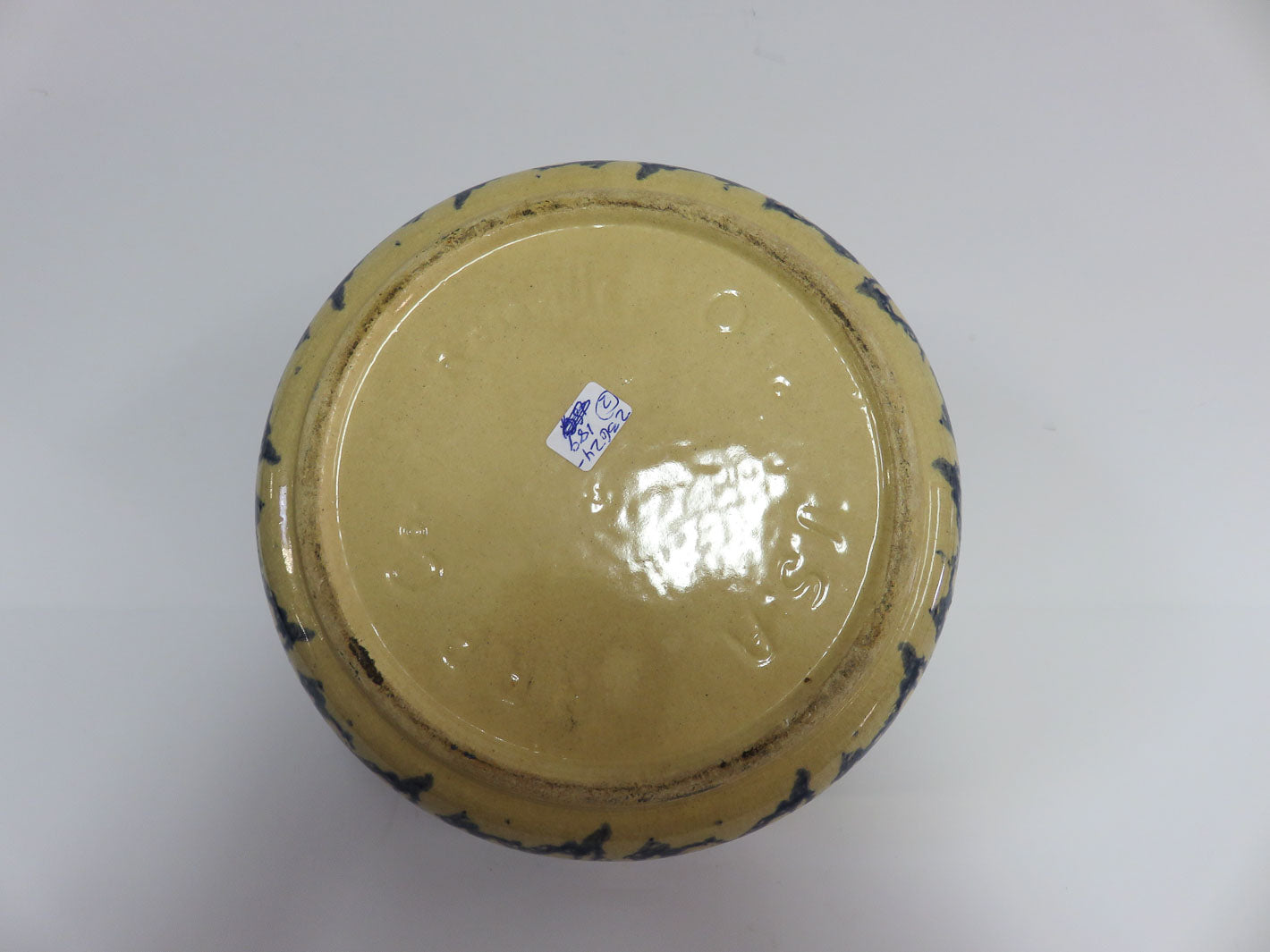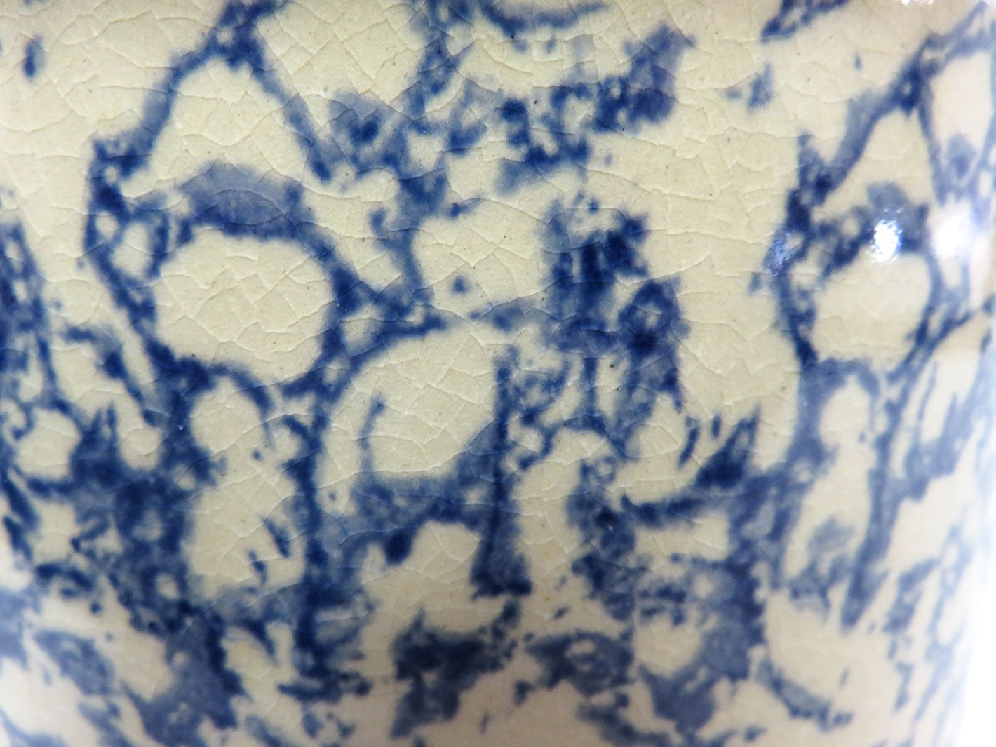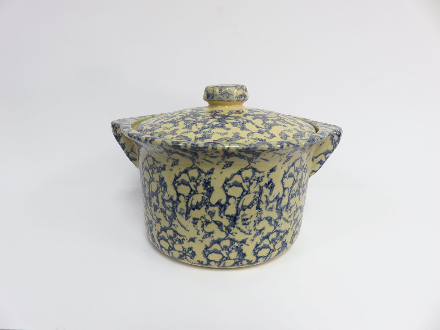 Blue sponge painted, covered dish. Two self handles, 2 pieces.