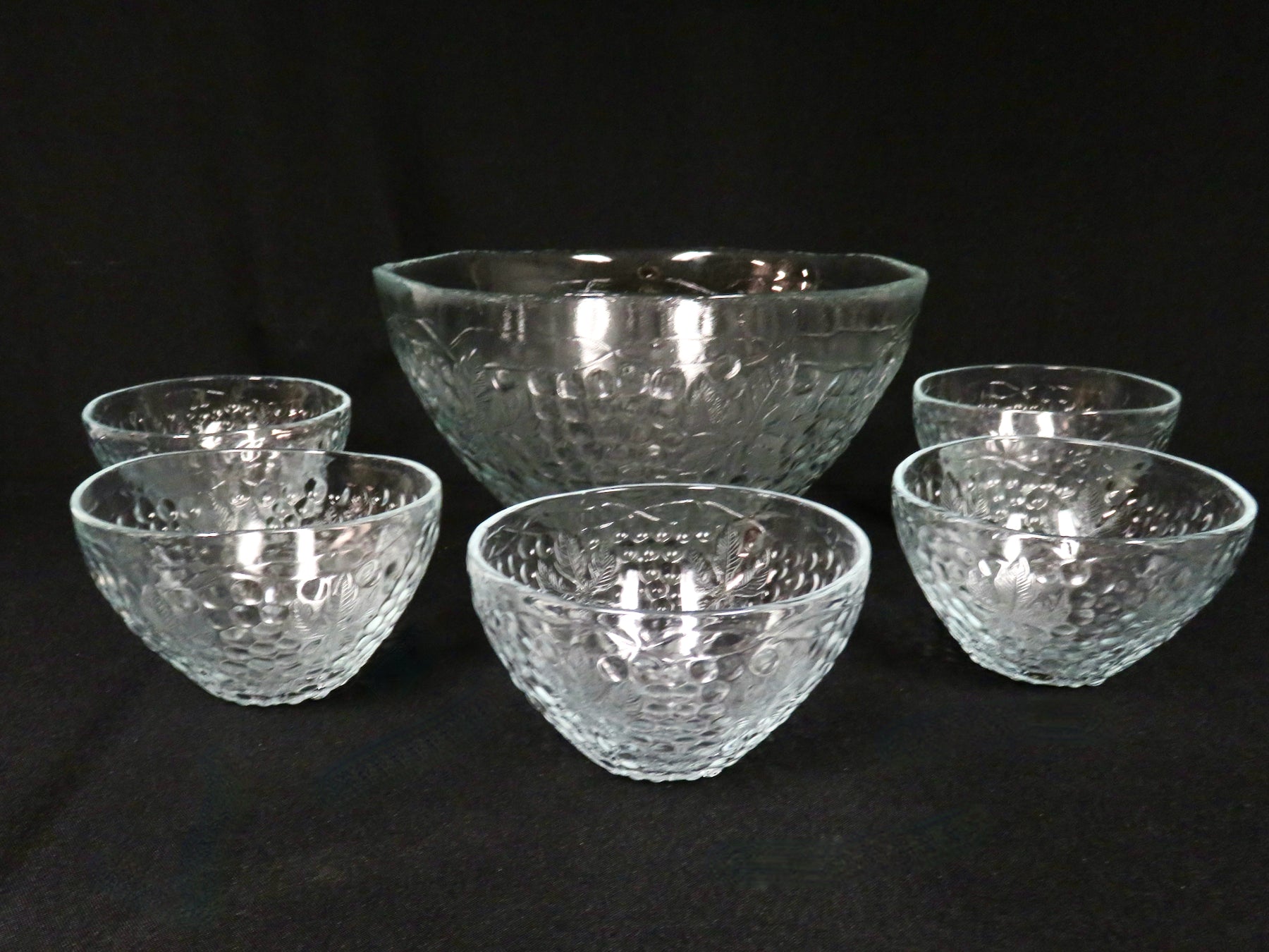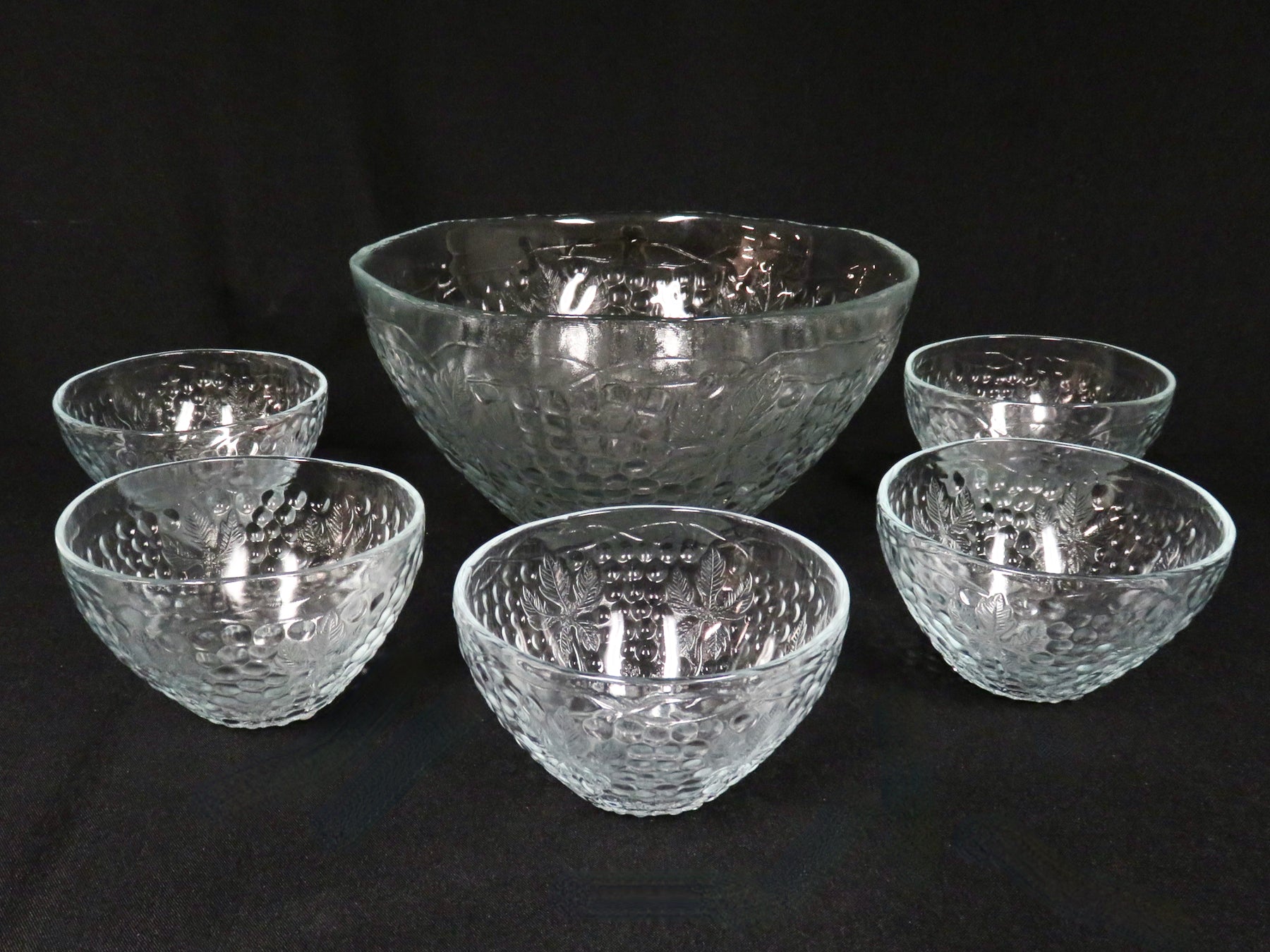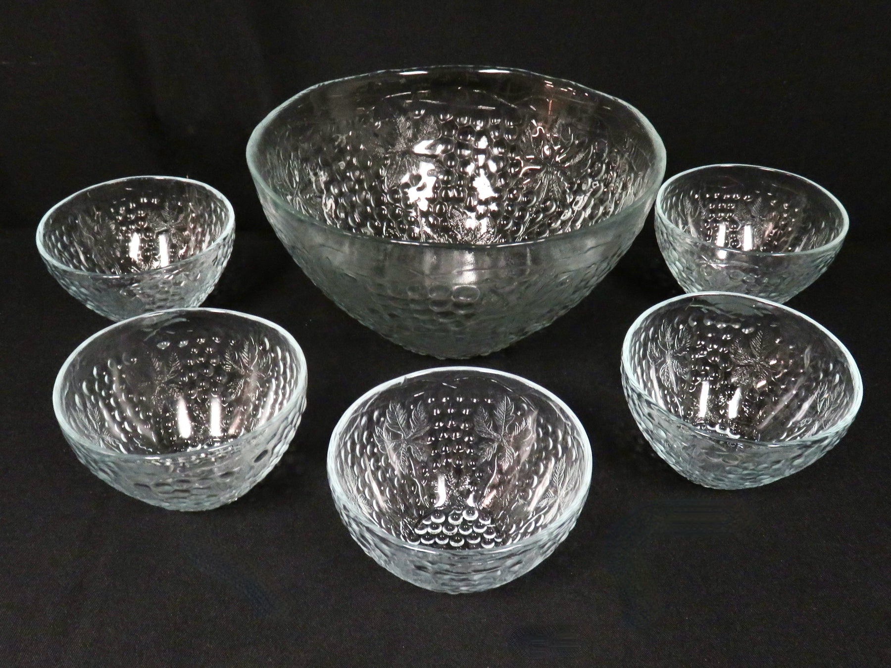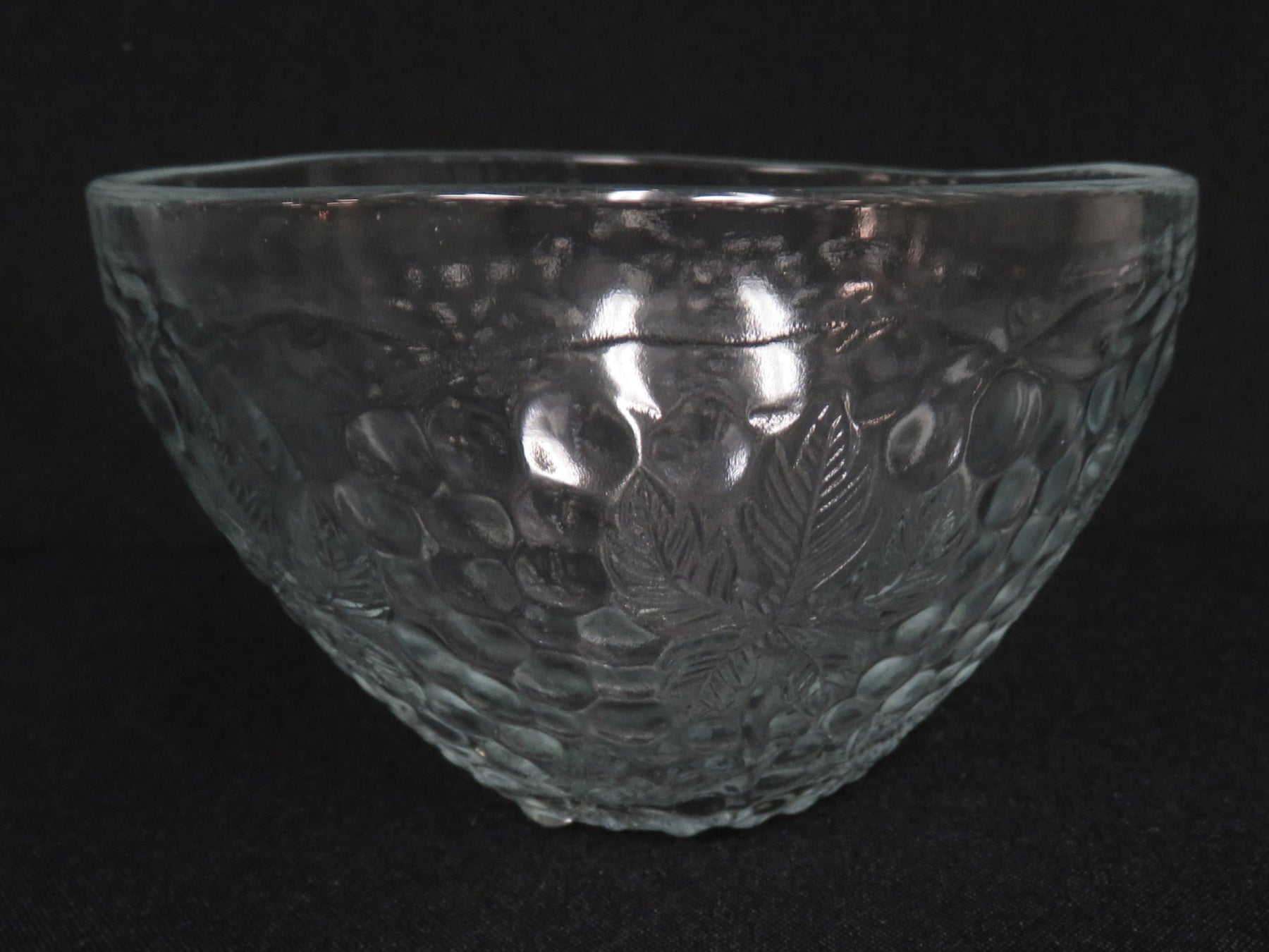 Set of 6, (5 small and 1 large), round, clear, pebble texture, embossed leaf design Large: 10" x 5.5"; Small: 5" x 3"