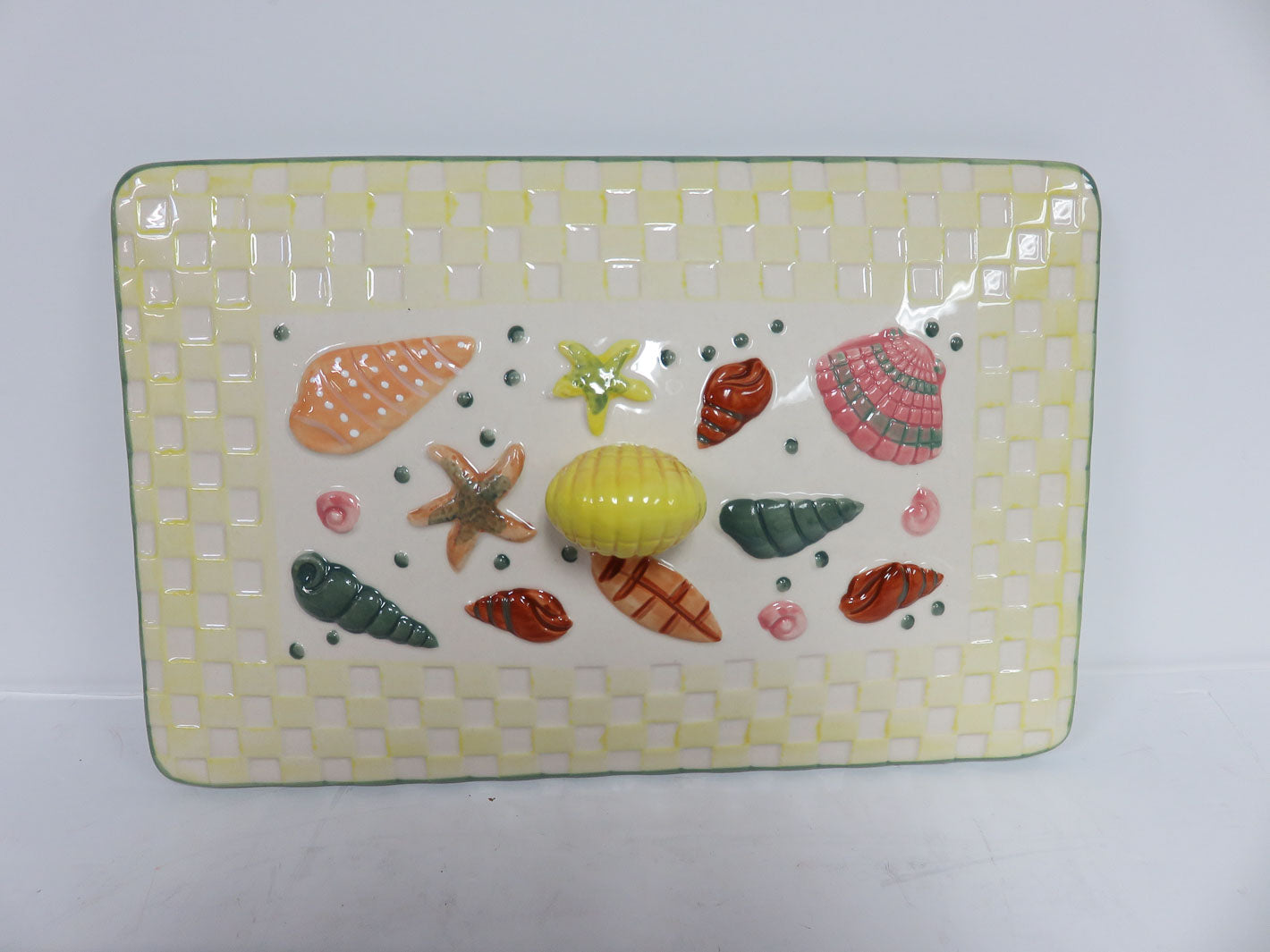 "Summer Shells" 2 Q, rectangular, yellow and white basket weave, shell design, 2 pc