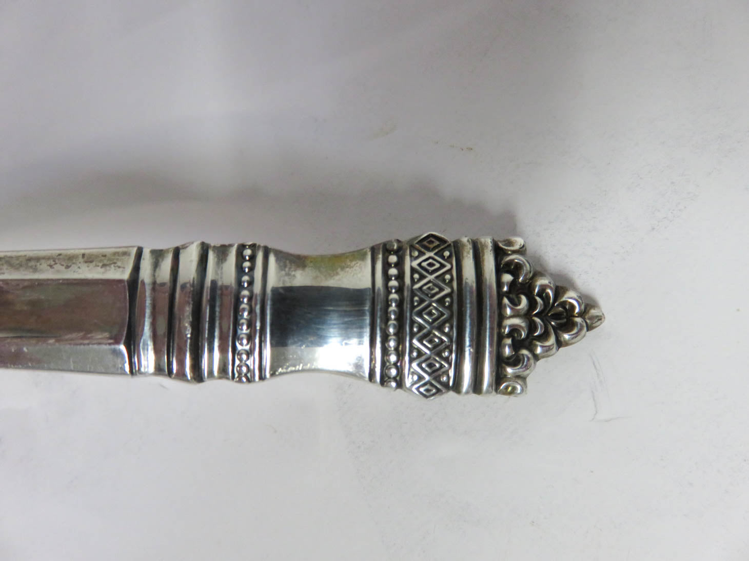 5 pieces, Danish Baroque, approx wt 13.63oz of silver, gravy ladle, fork, slotted spoon, 2 spoons.