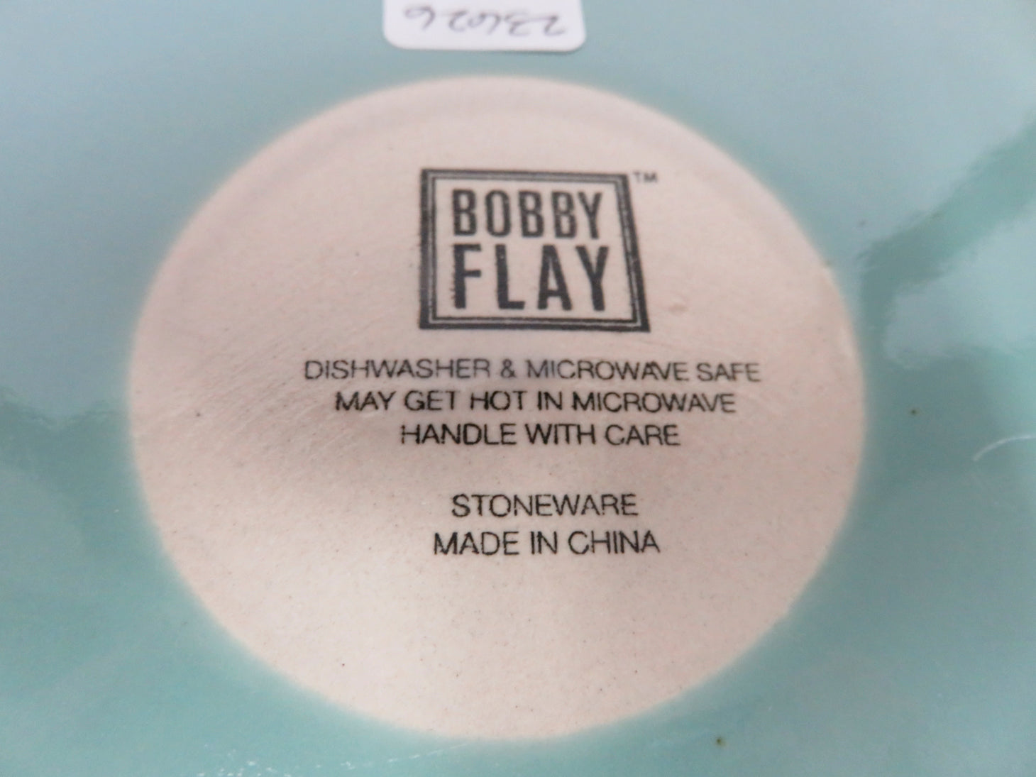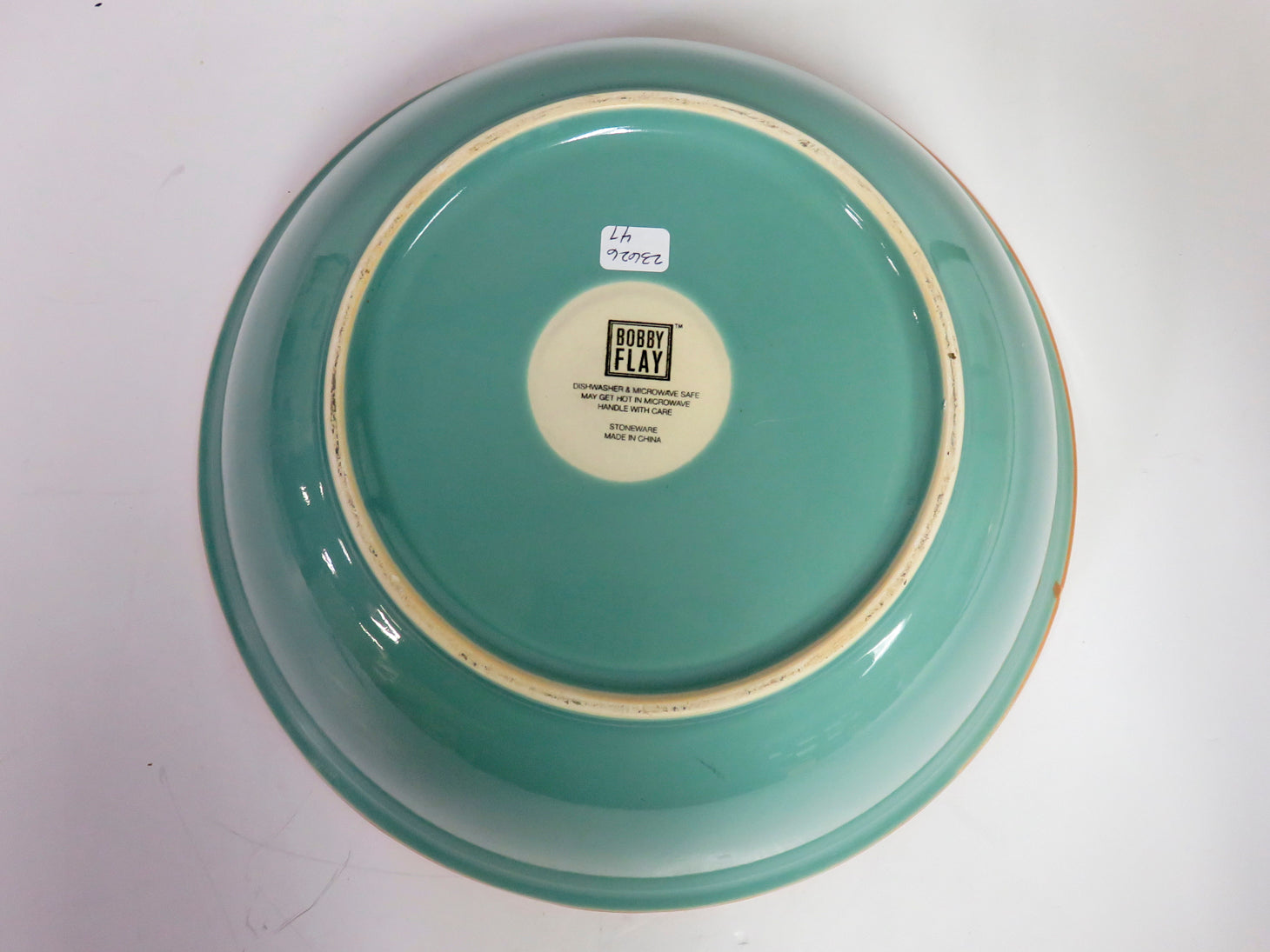 Turquoise with brick colored rim. By Bobby Flay. Two available. Sold separately #23626-46.
