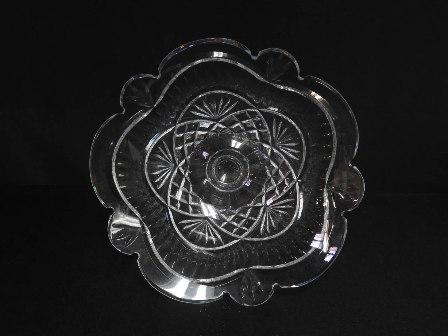 Centerpiece pedestal, x cut and vertical wedge with scalloped edge.