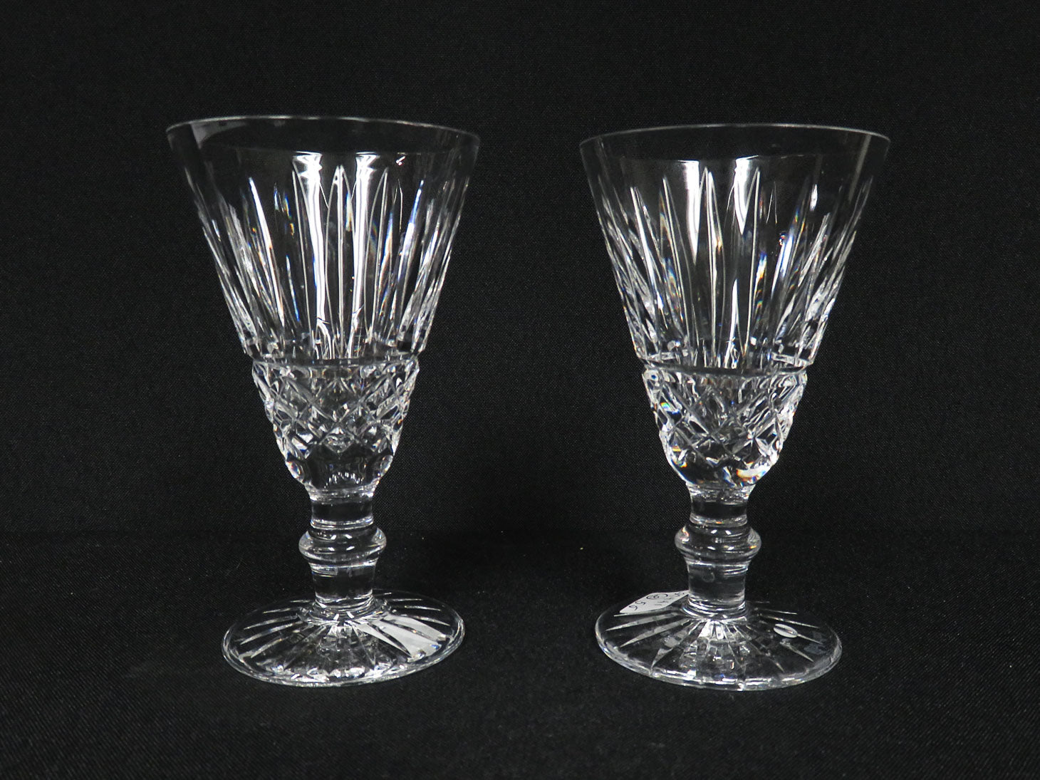 Set of 2, Deep criss-cross and vertical cuts with knob on stem and starburst base.