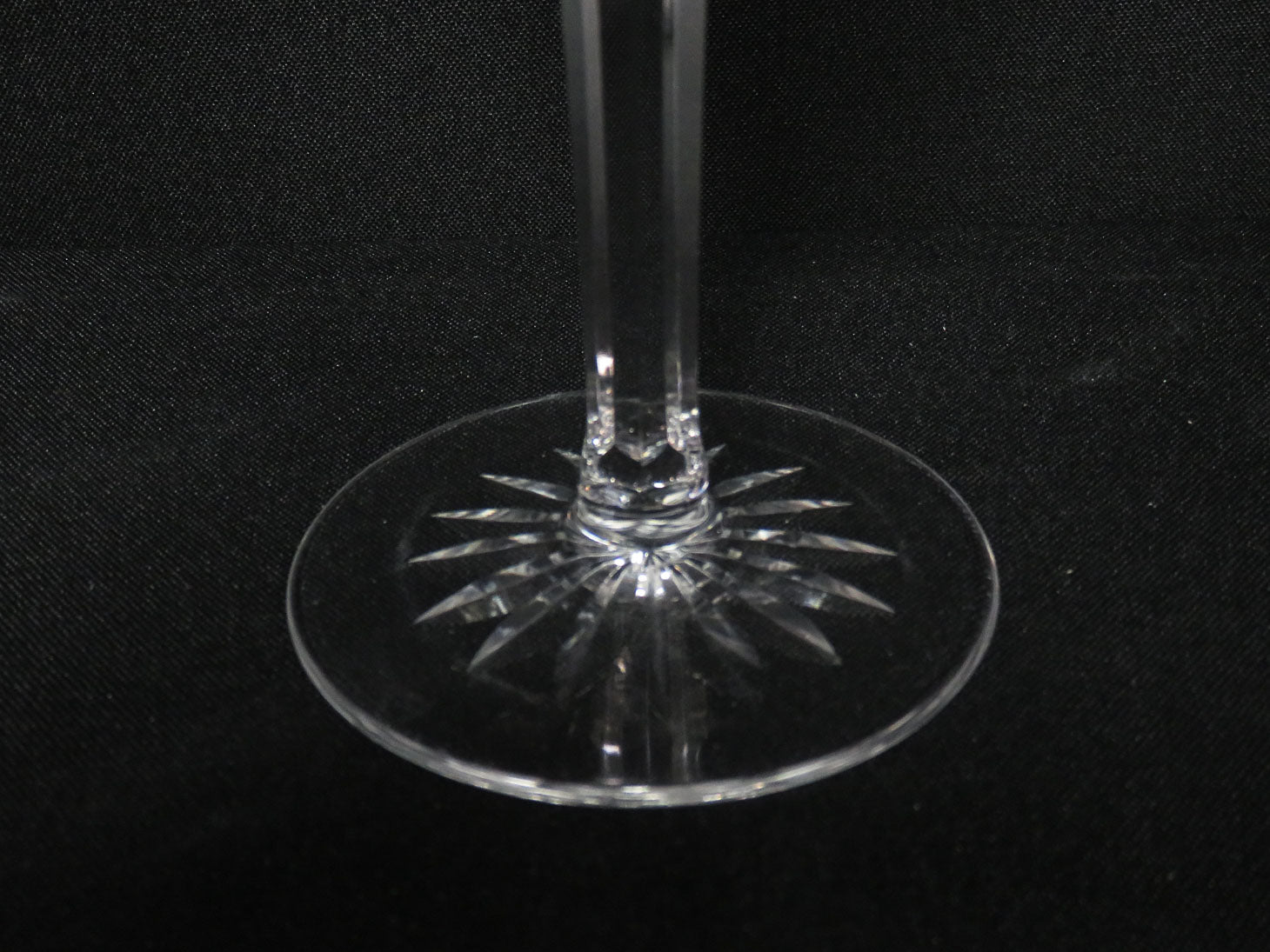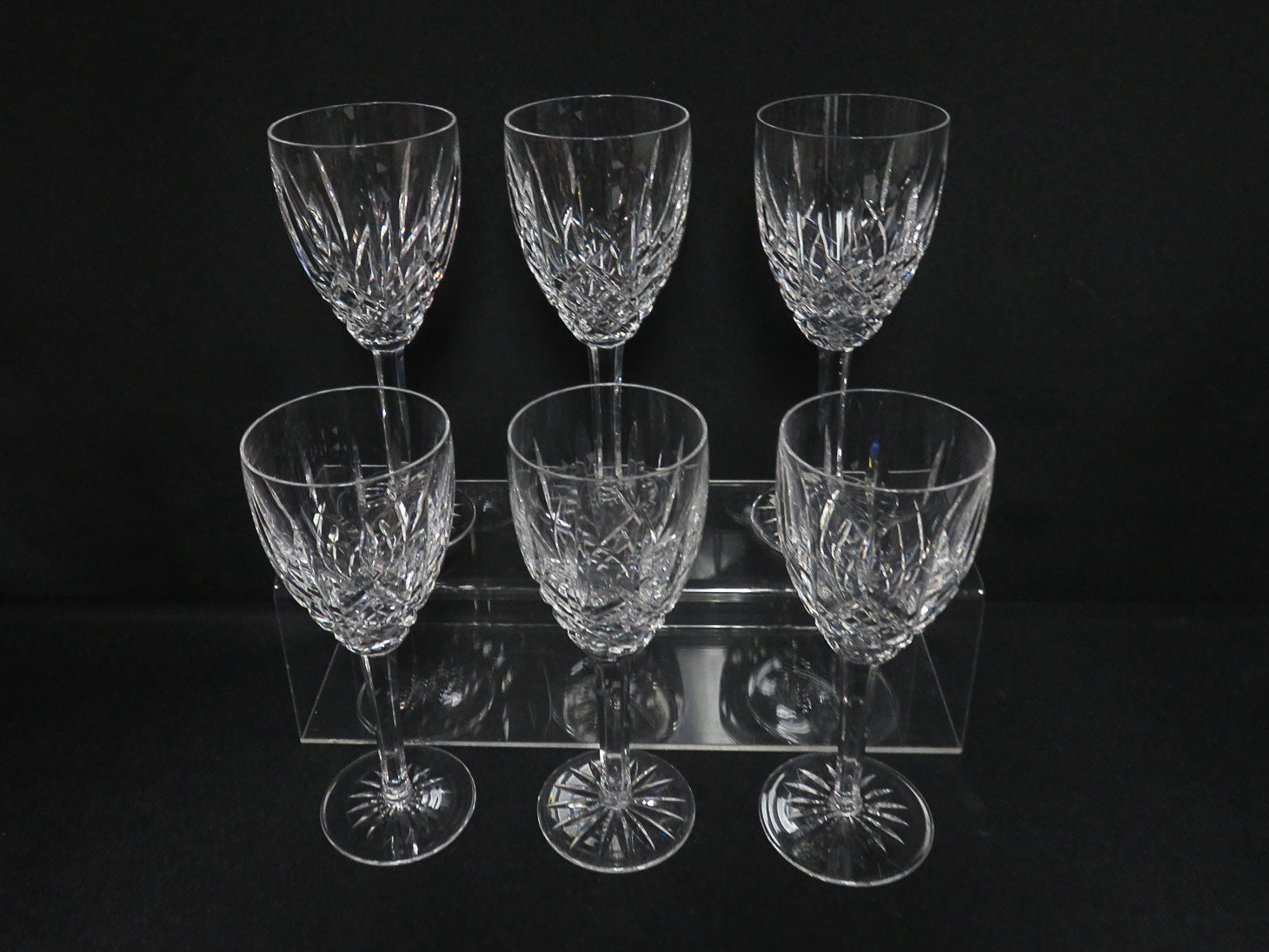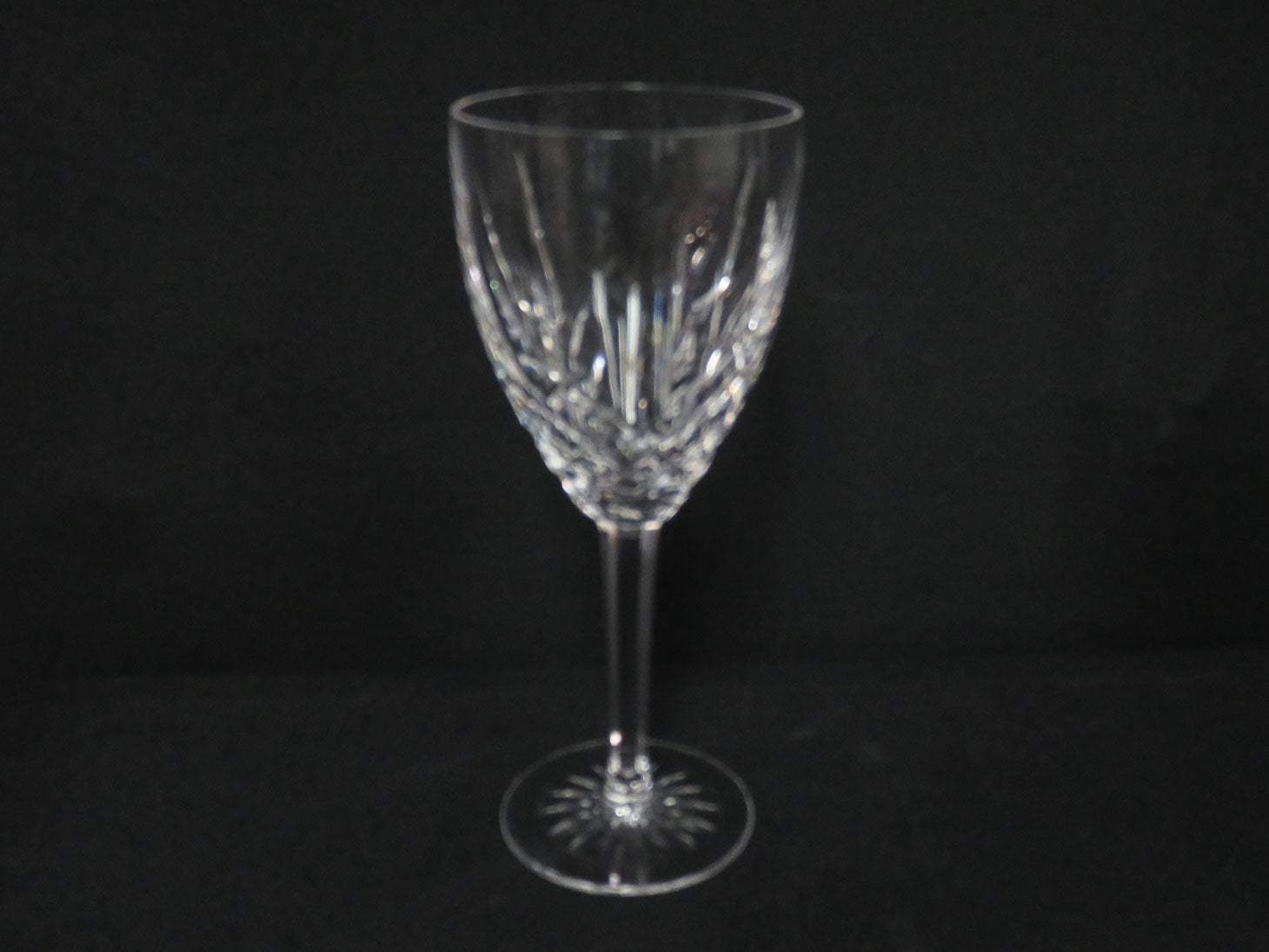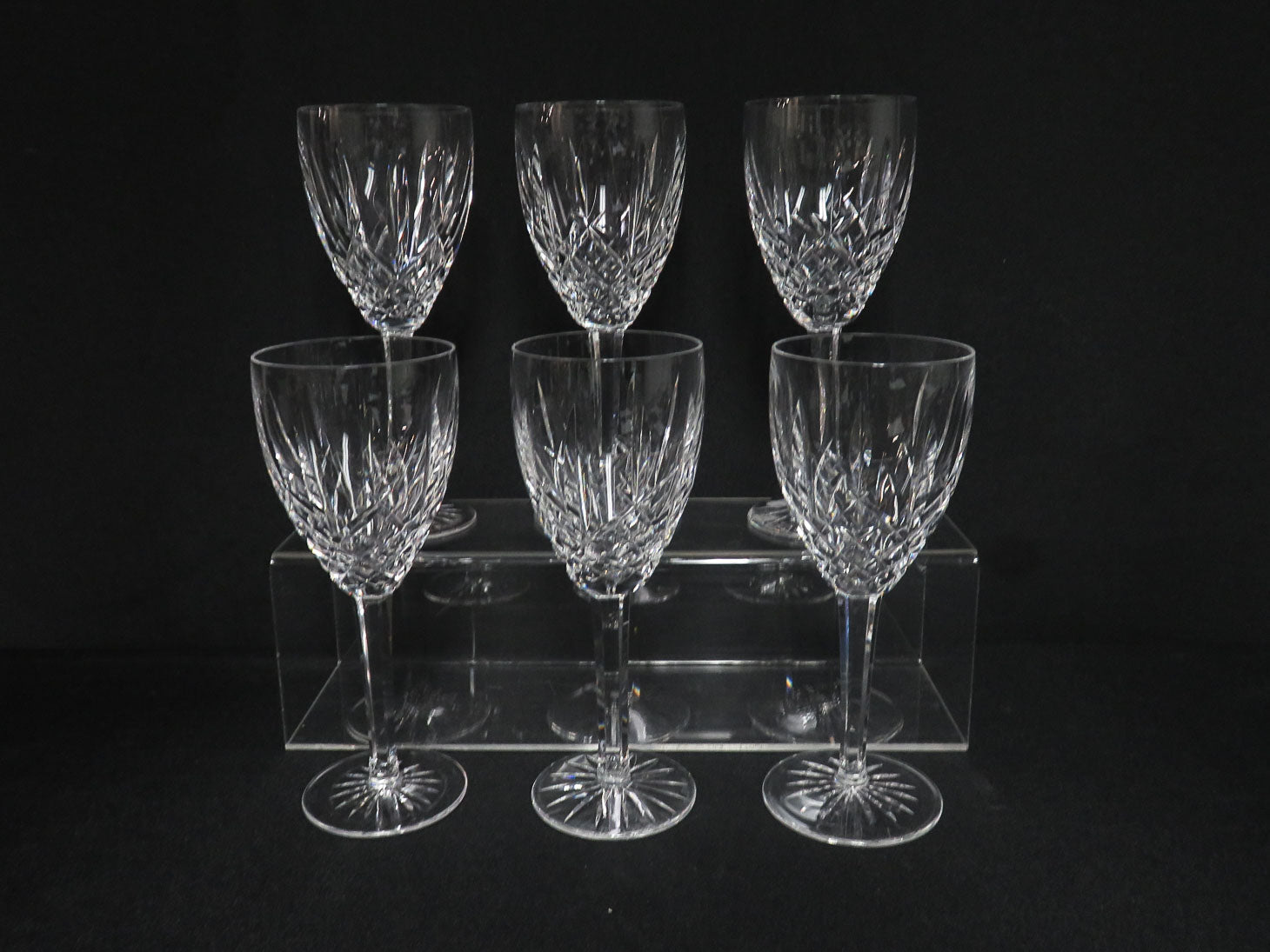 Item Number: 17301-27 Set of 6, "Araglin" pattern, clear with vertical and X cuts, stemmed with starburst round base 8"H