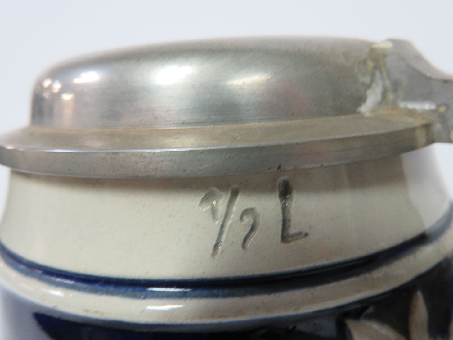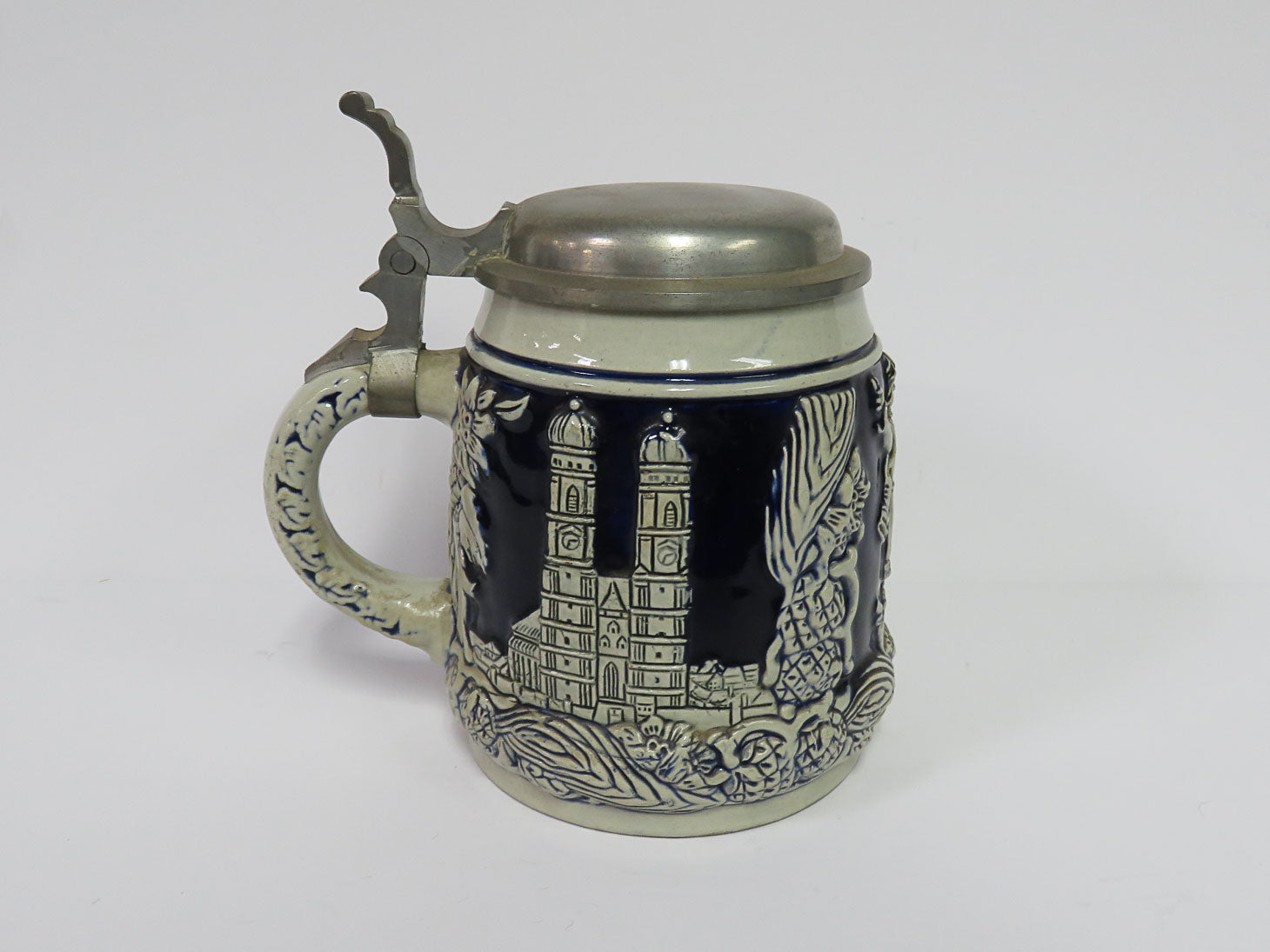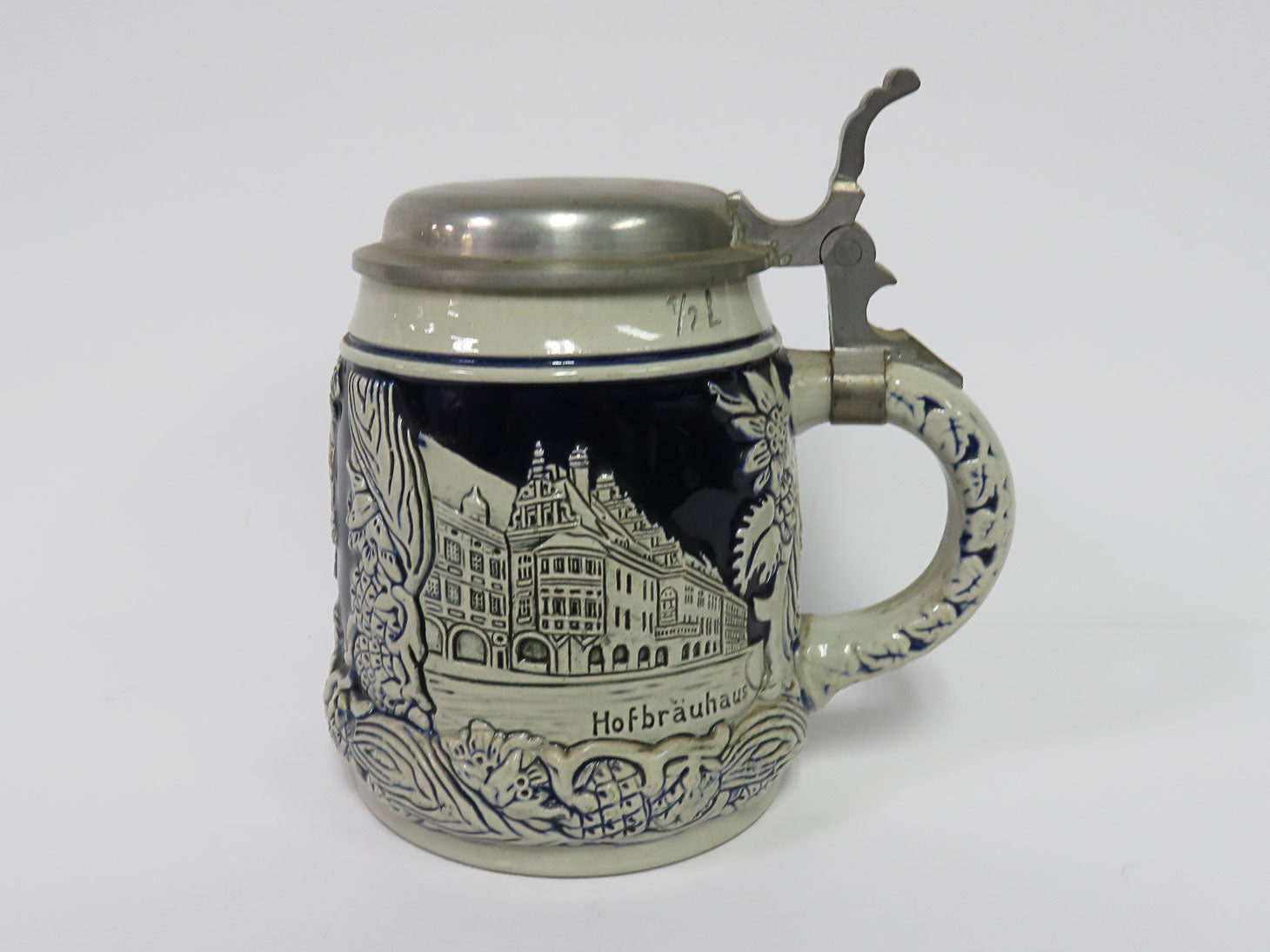 Navy and gray, scene of Hofbrauhaus and Munich, 1/2 Liter, pewter lid #5411