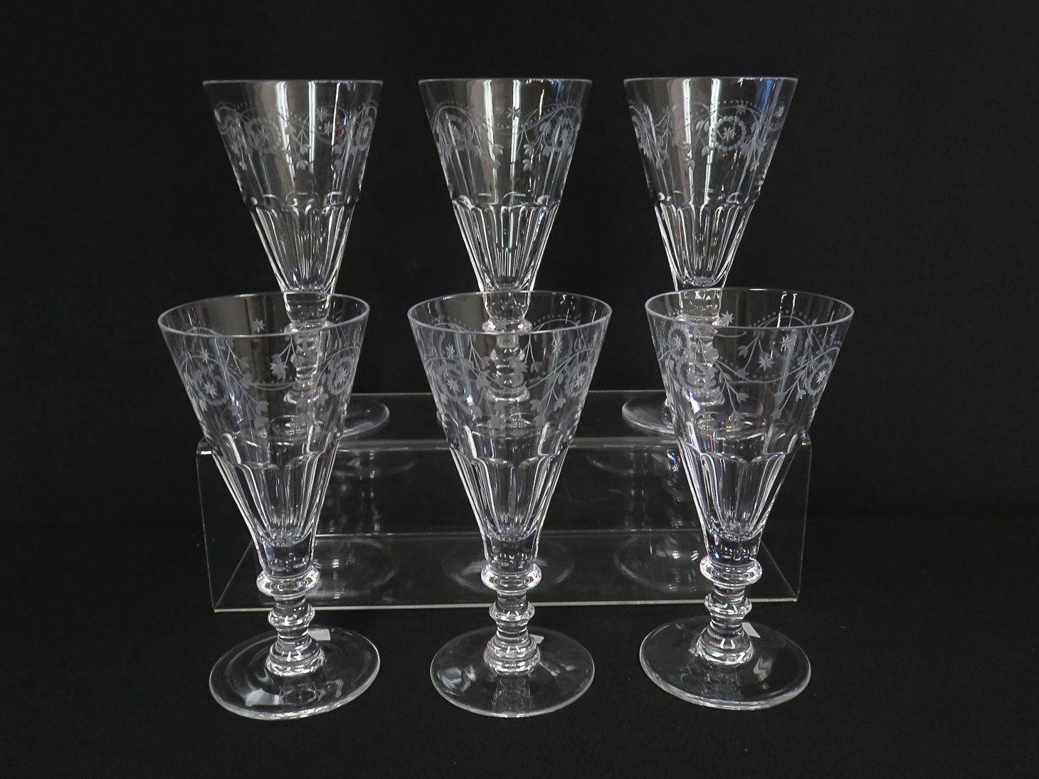 Item Number: 4554-12 Set of 6, "Bunny" pattern goblet, engraved and flat cuts of stars, dots and vines. Additional set of 6 available, sold separately, #4554-11. 7.25" H