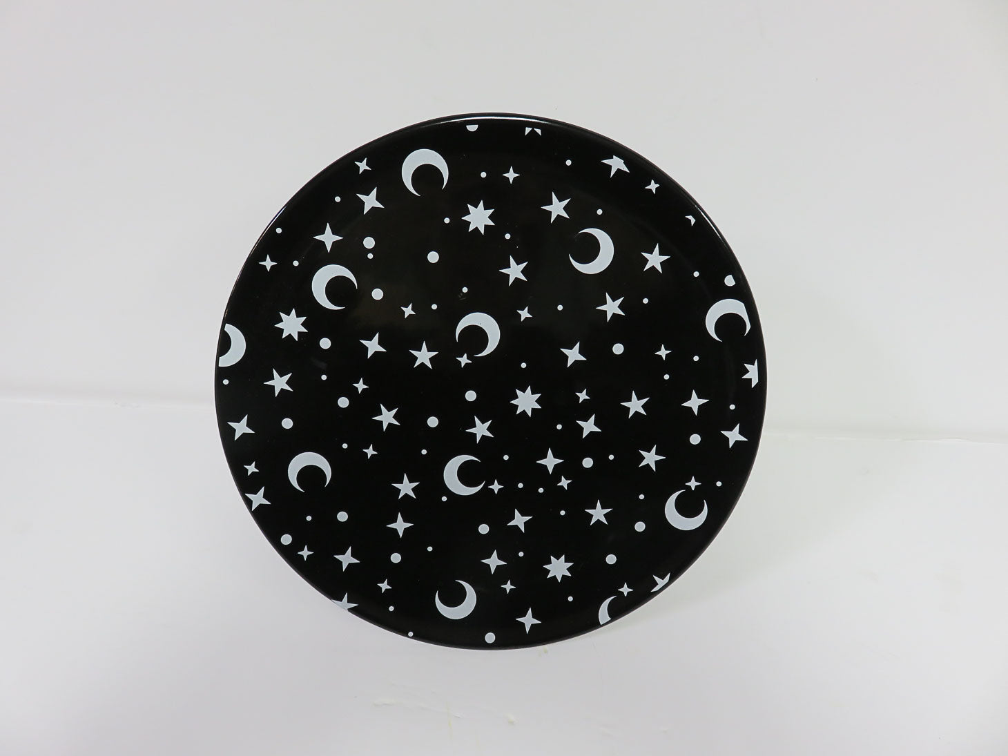 Item Number: 19452-825 Black pedestal cake stand with white stars and moons. By Celebrate It. 10.25" x 6"