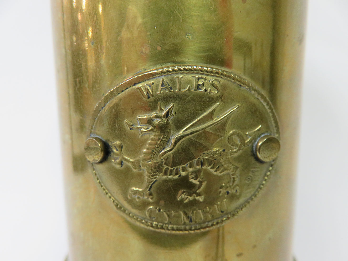 Vintage Wales Crymu, cylindrical, adjustable hook, brass base and top, glass center
