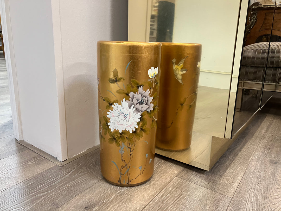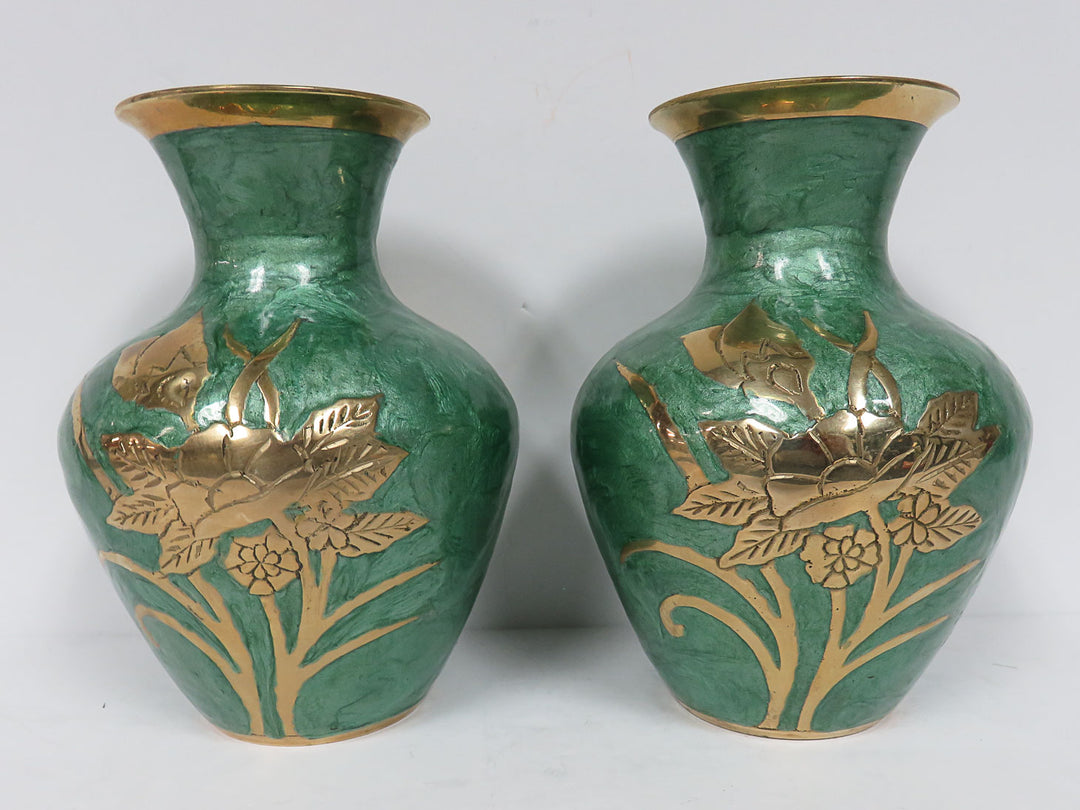 Pair Enameled Brass Urns