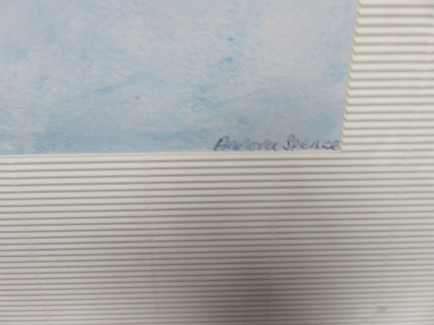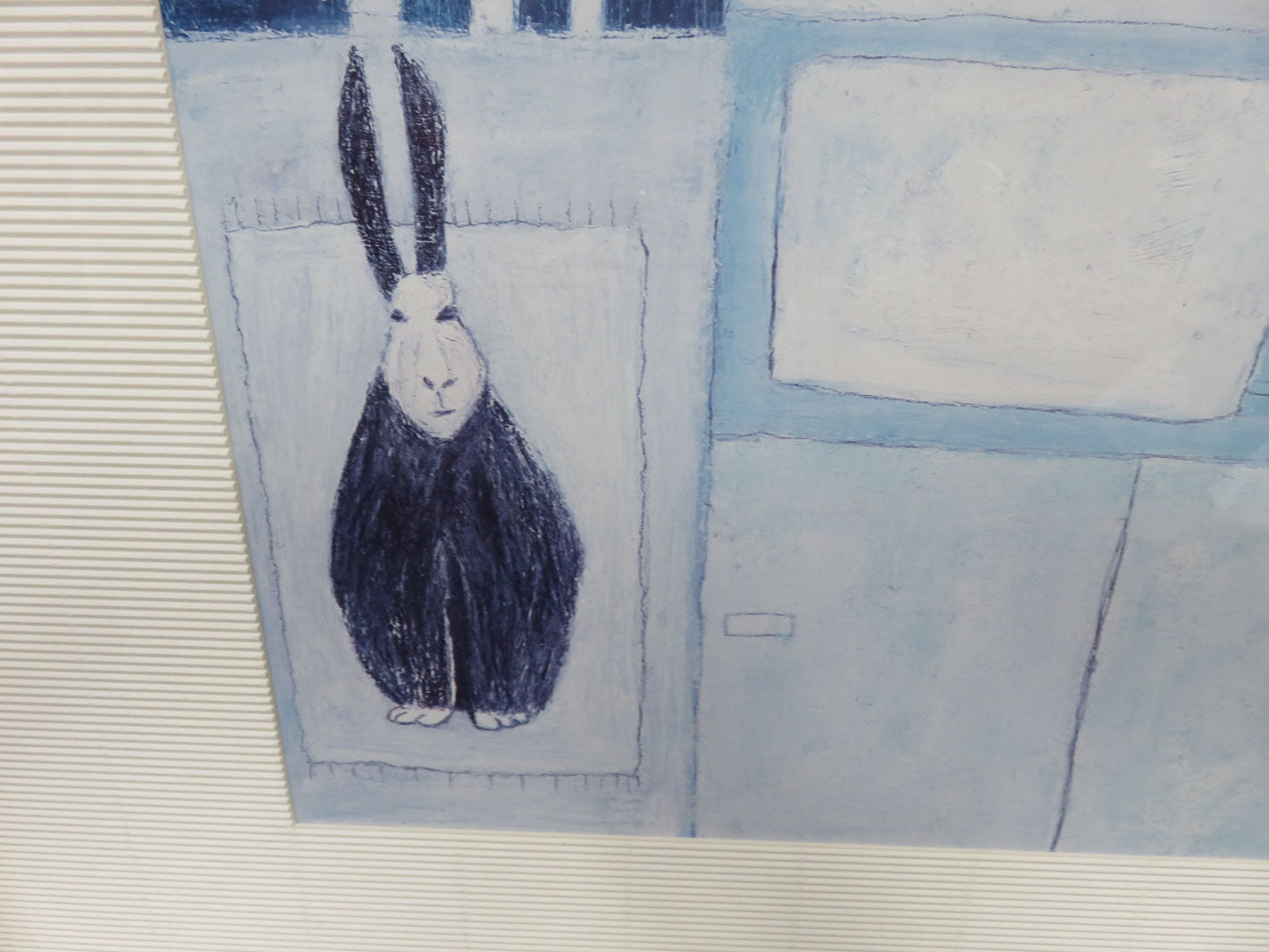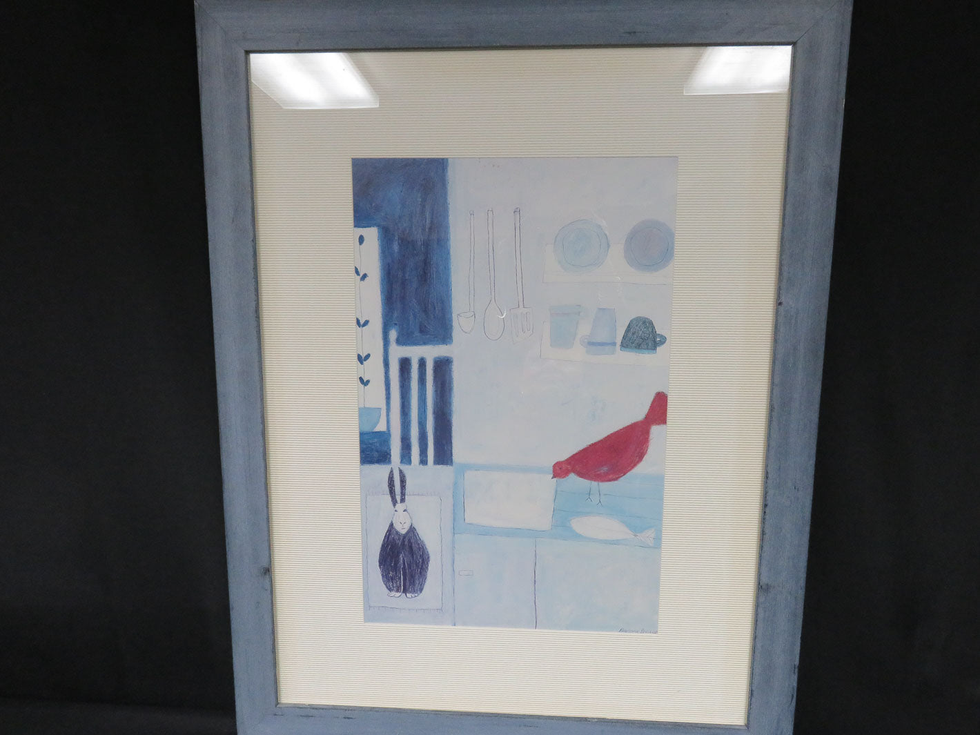 Kitchen scene, wide cream mat, weathered blue frame