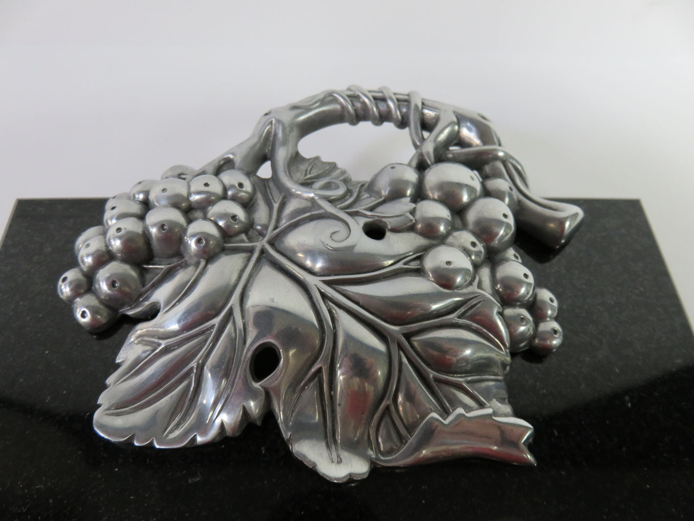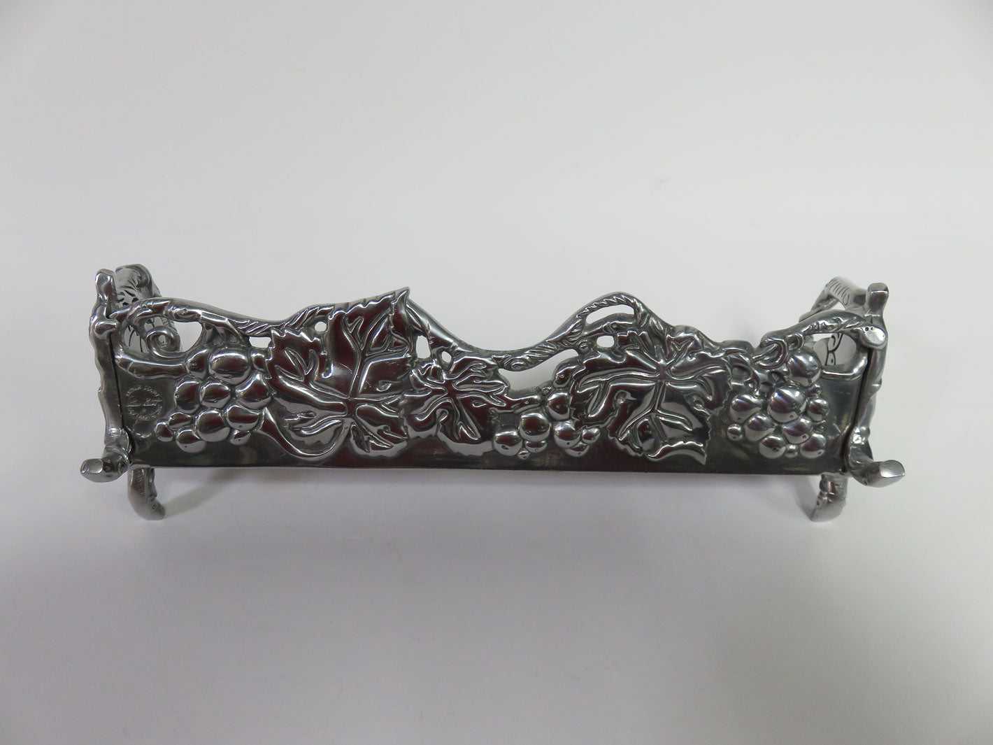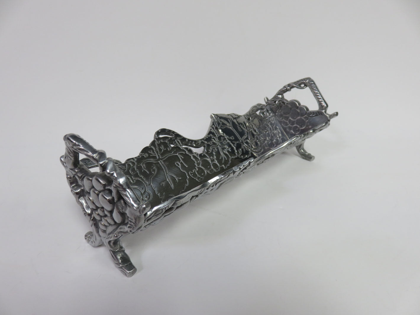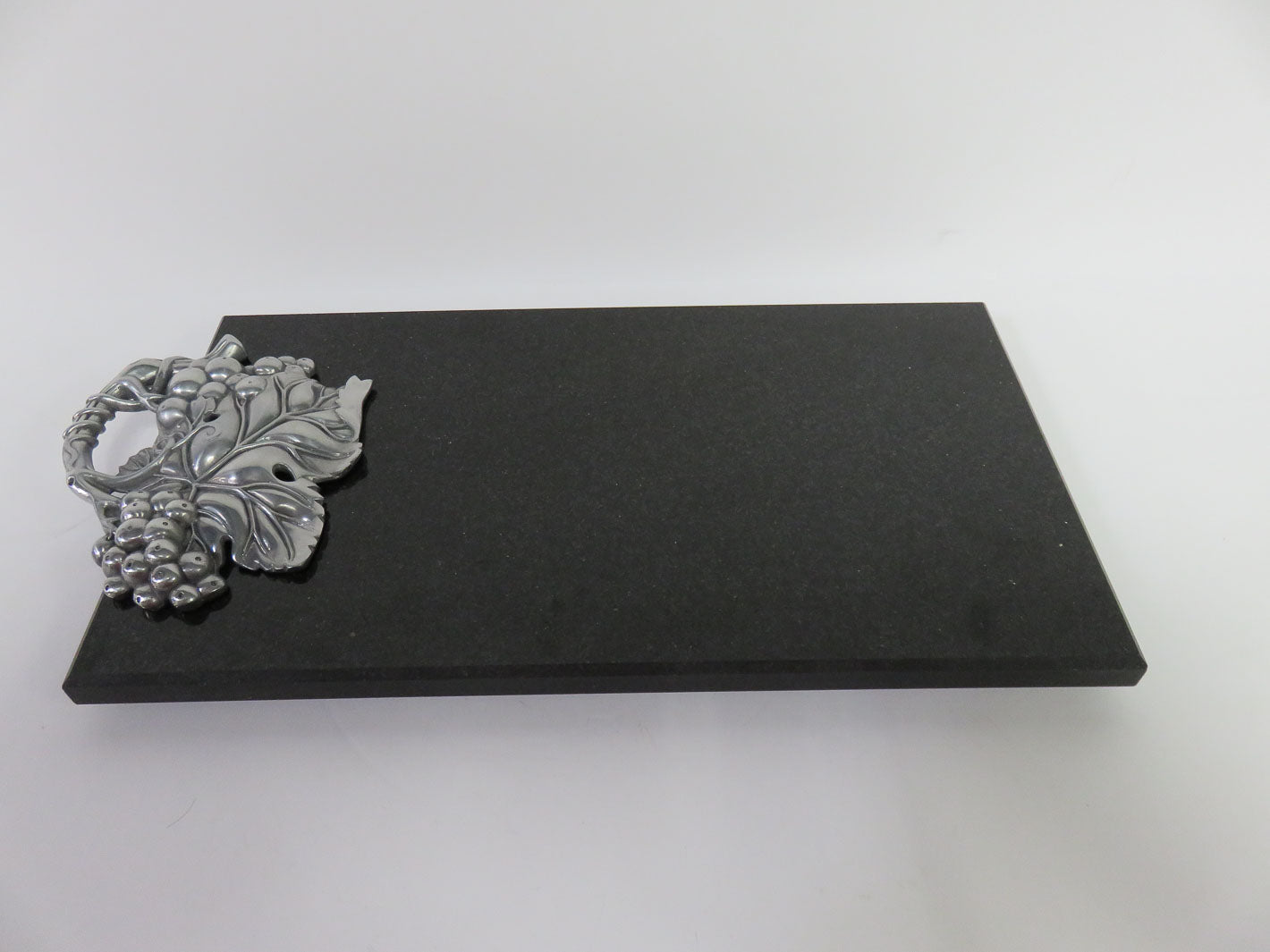 Arthur Court. Black rectangular cheese broad with silver grape leaf design; and silver cracker holder (2 pcs)