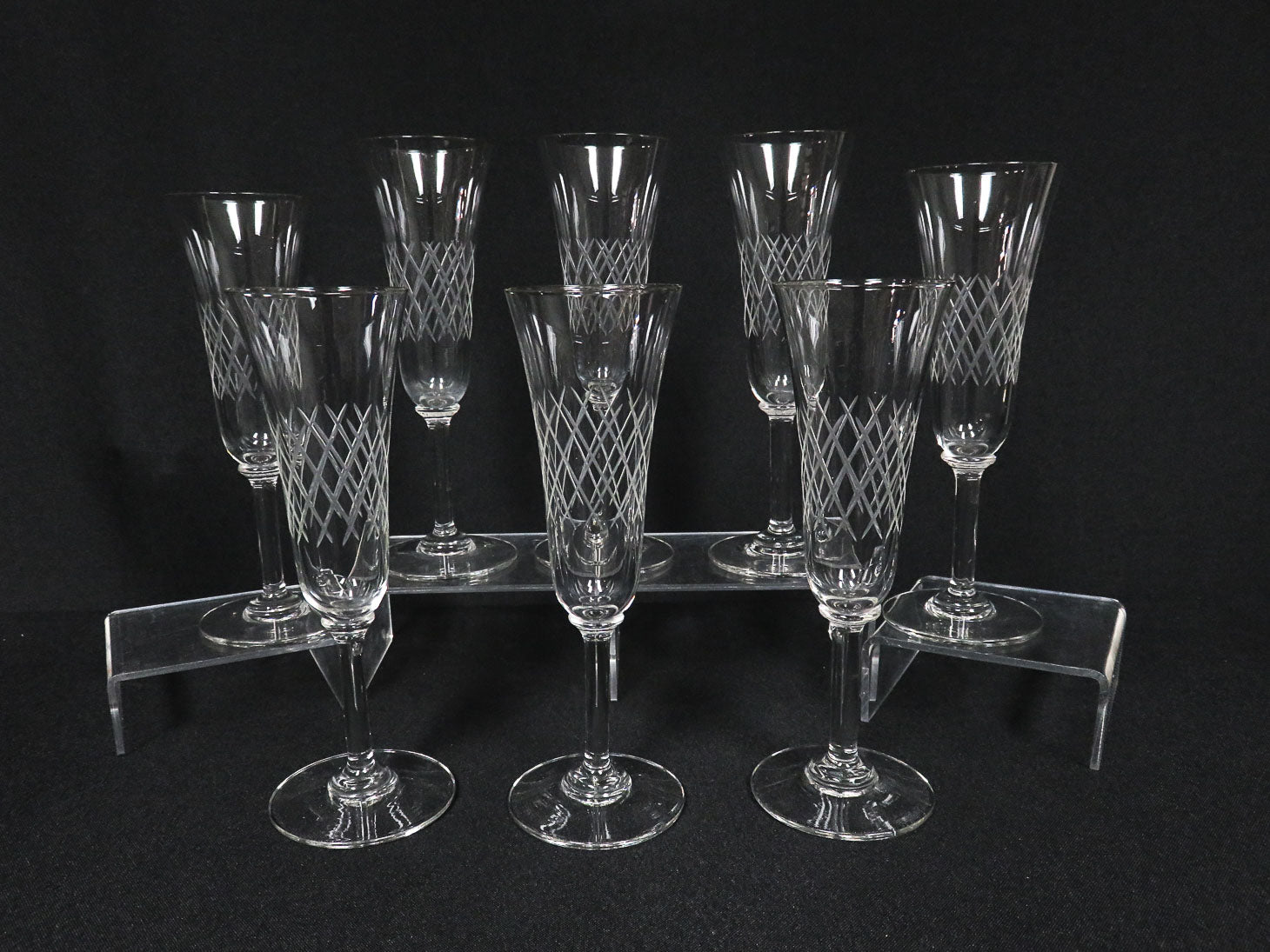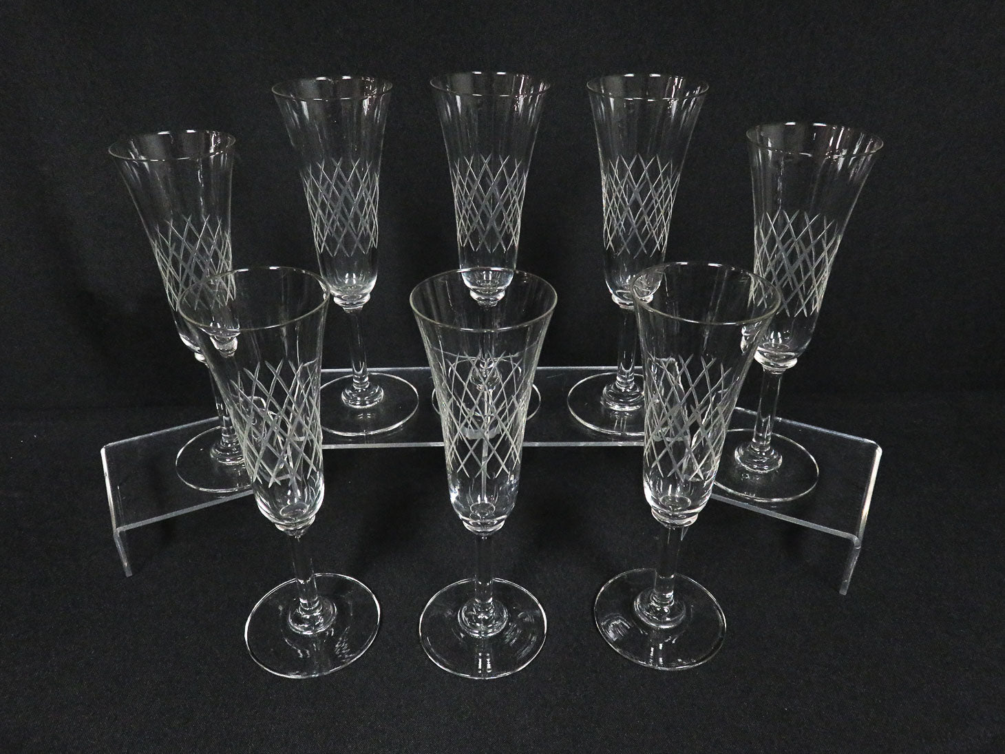 Set of 8, Vintage frosted cut design on body.