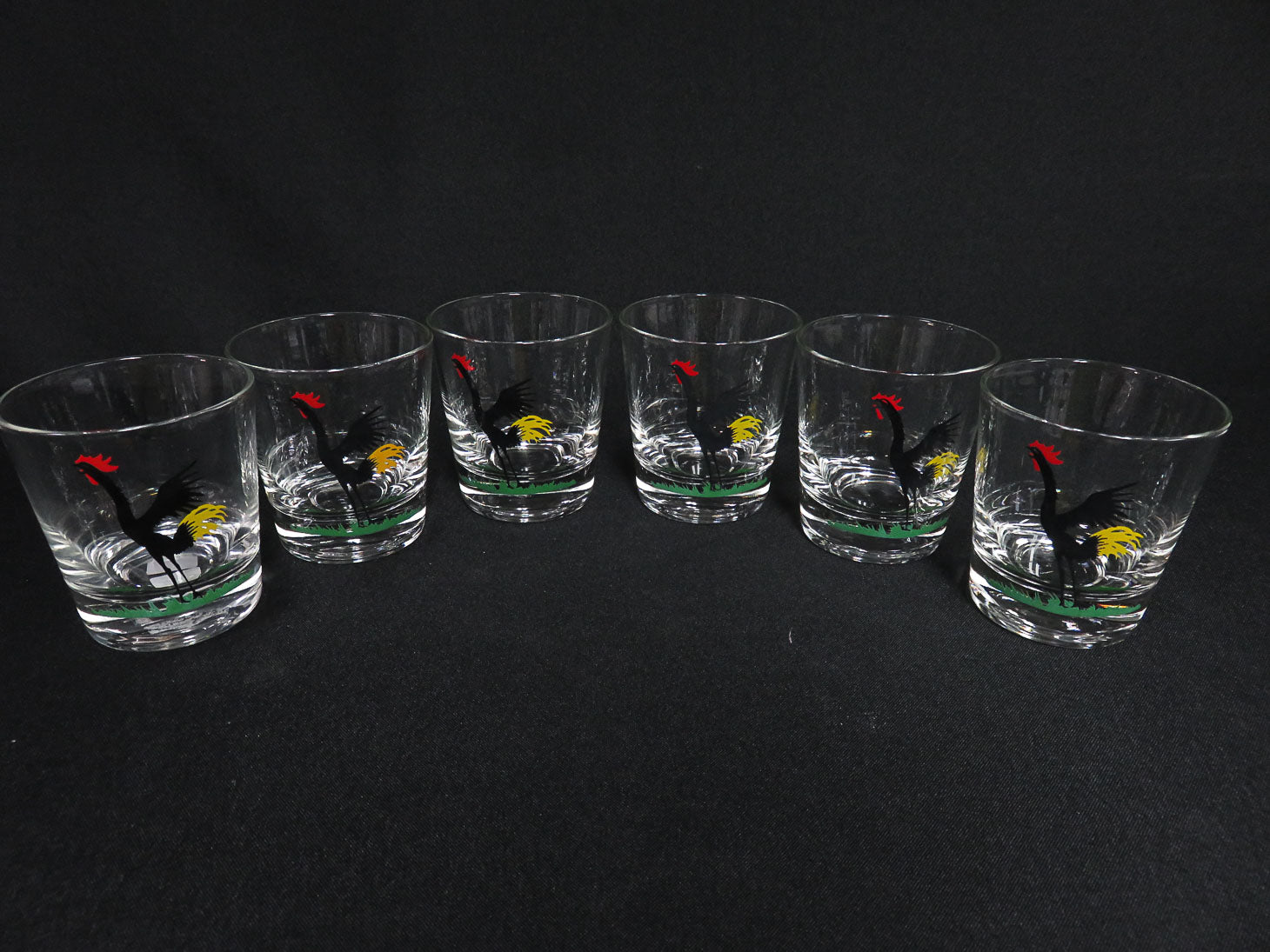 Set of 6, MCM, black rooster by Federal Glass Co.