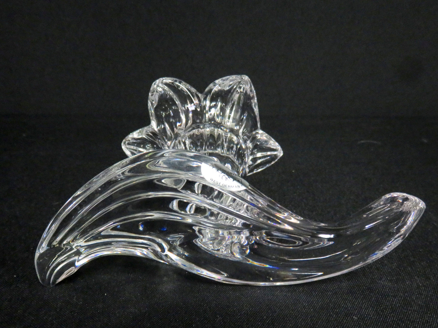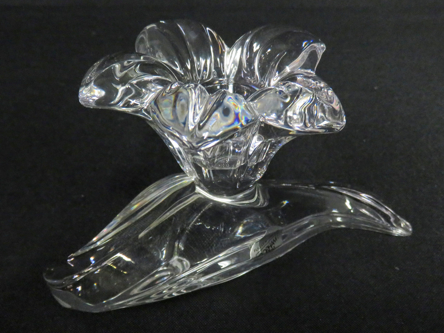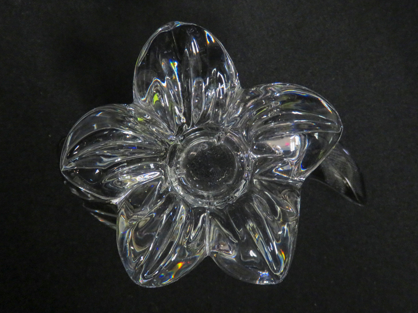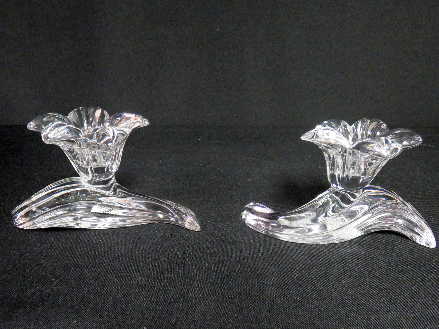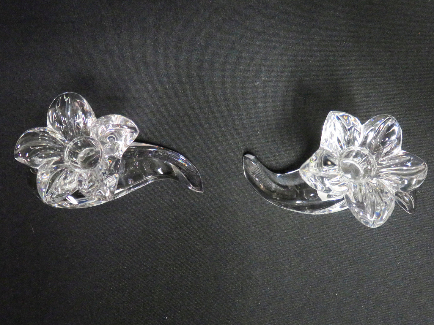 Pair, clear, "Daffodil" floral petal design on abstract base
