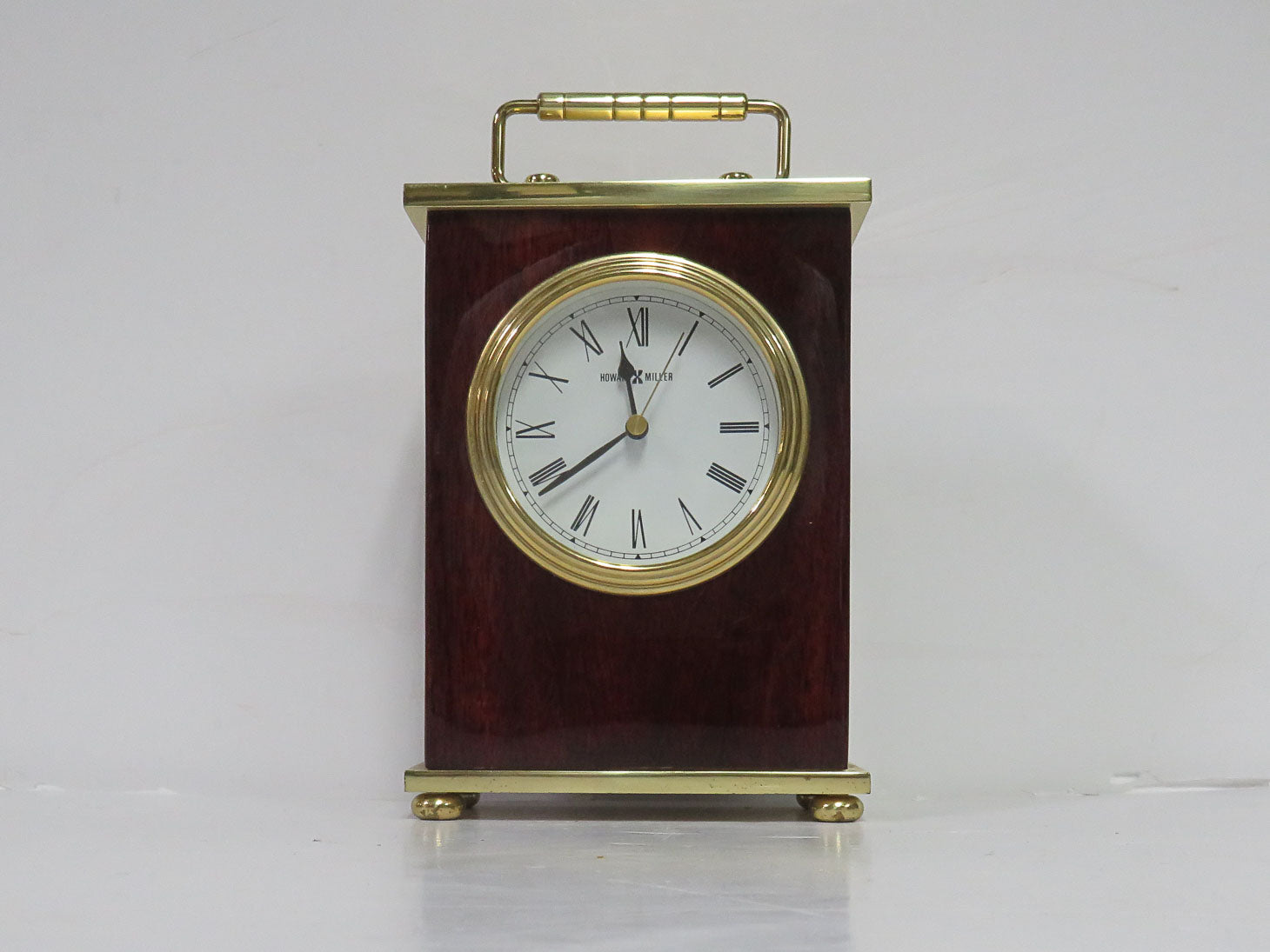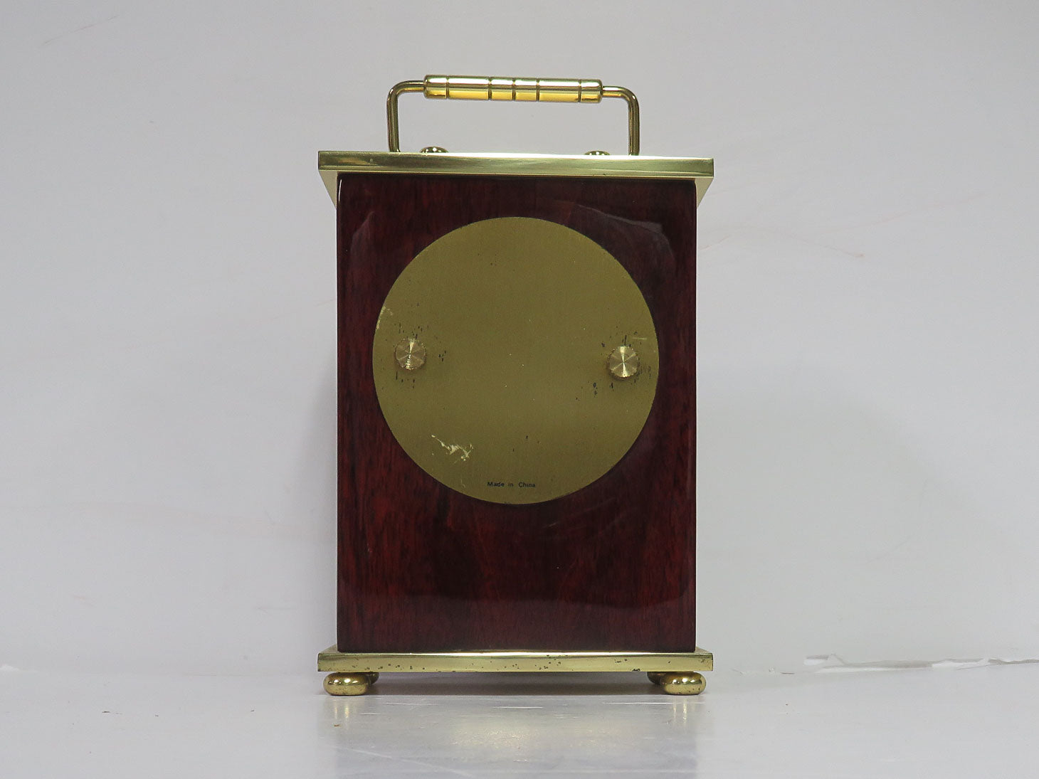 Item Number: 2082-17 Lacquered rosewood and brass clock. Has second hand and is battery operated. 5" x 2.25" x 8.5"