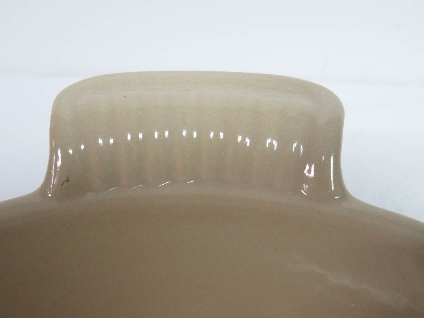 Kiwi, oval, beige interior, enamel covered cast iron, marked 36