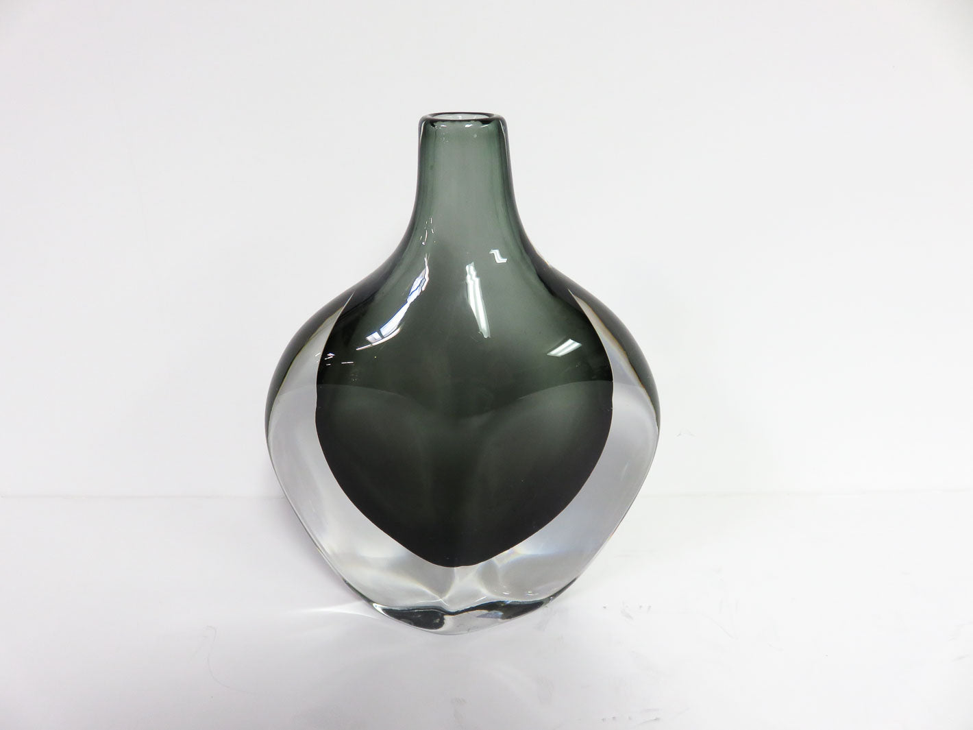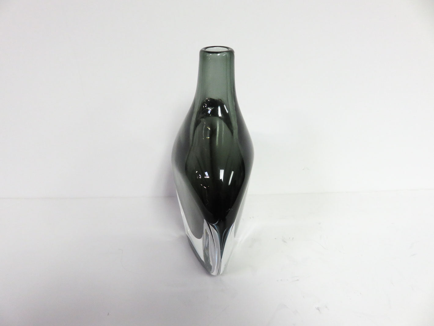 Item Number: 29856-7 Nils Landberg For Orrefors Sommerso Glass Black Vase tear drop shape, numbered 6" x 2.5" x 8"
