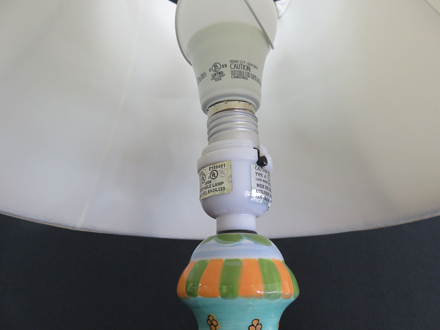 Patricia DuPont lamp with white bunnies and cream colored shade