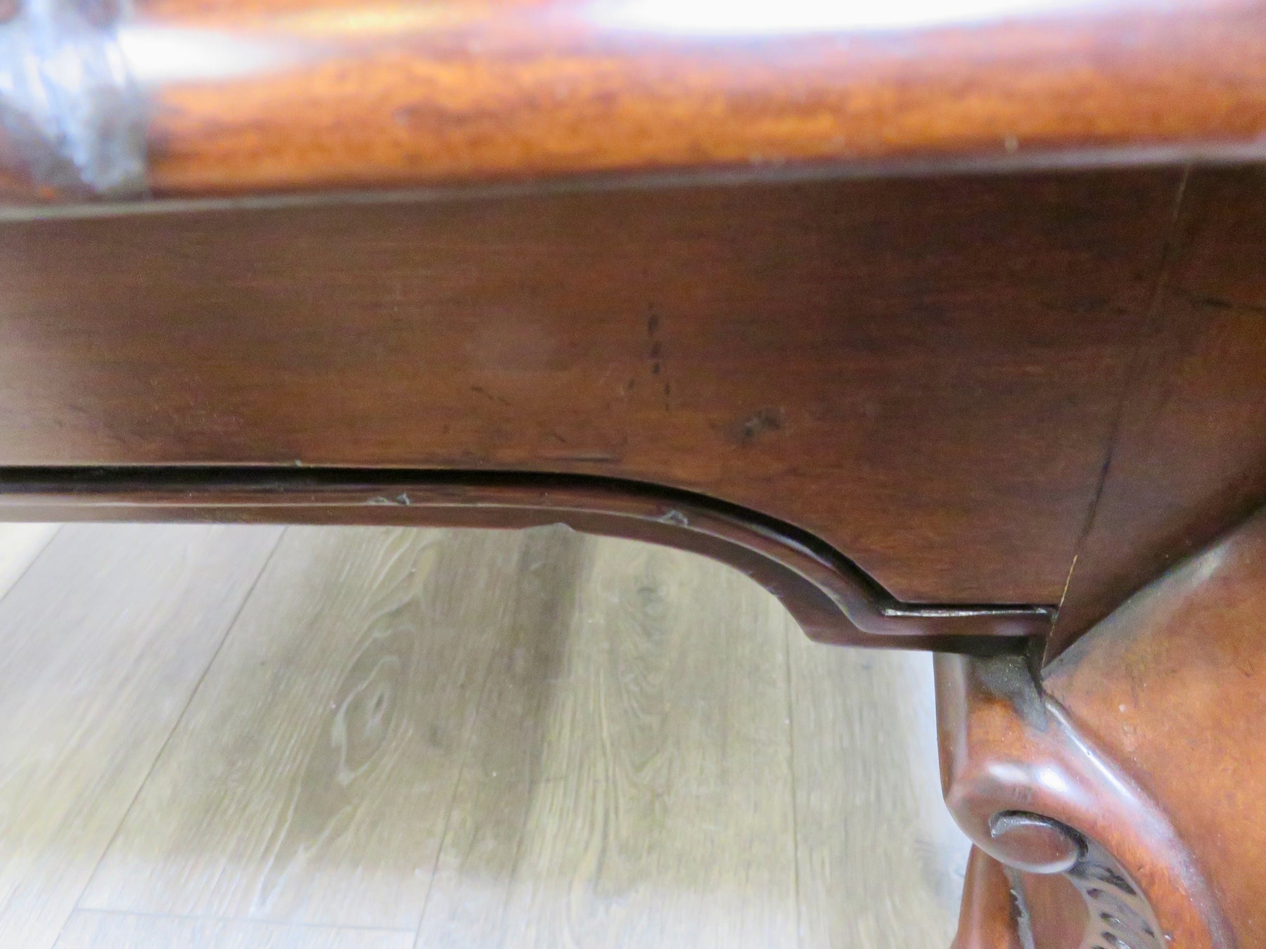 Item Number: 11131-53 Dark stain with distressed finish, beveled edge and carved cabriole legs with claw feet 38" x 55" x 18.5"