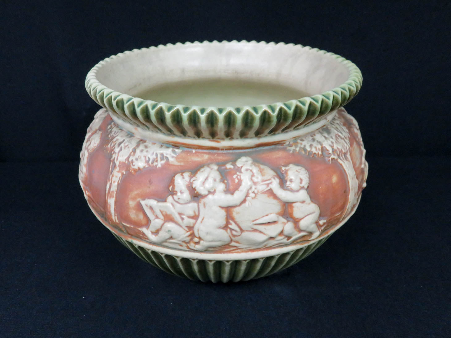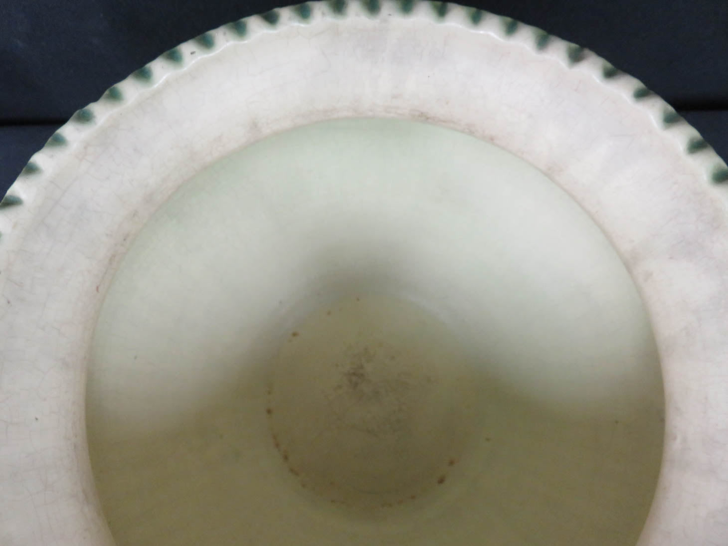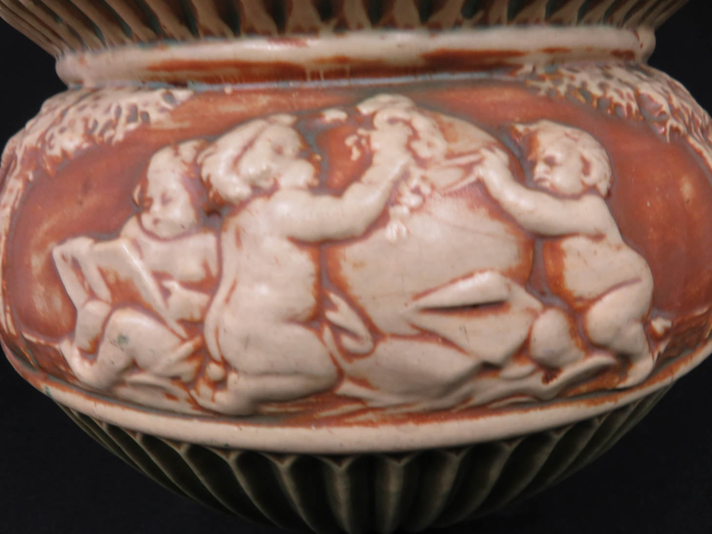 "Donatello" green ribbed with flared top, cream and brown band of Cherubs
