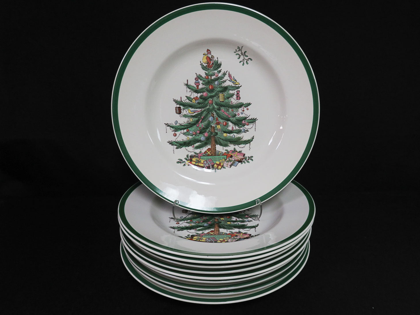 Set of 10, Decorated tree with green rim.