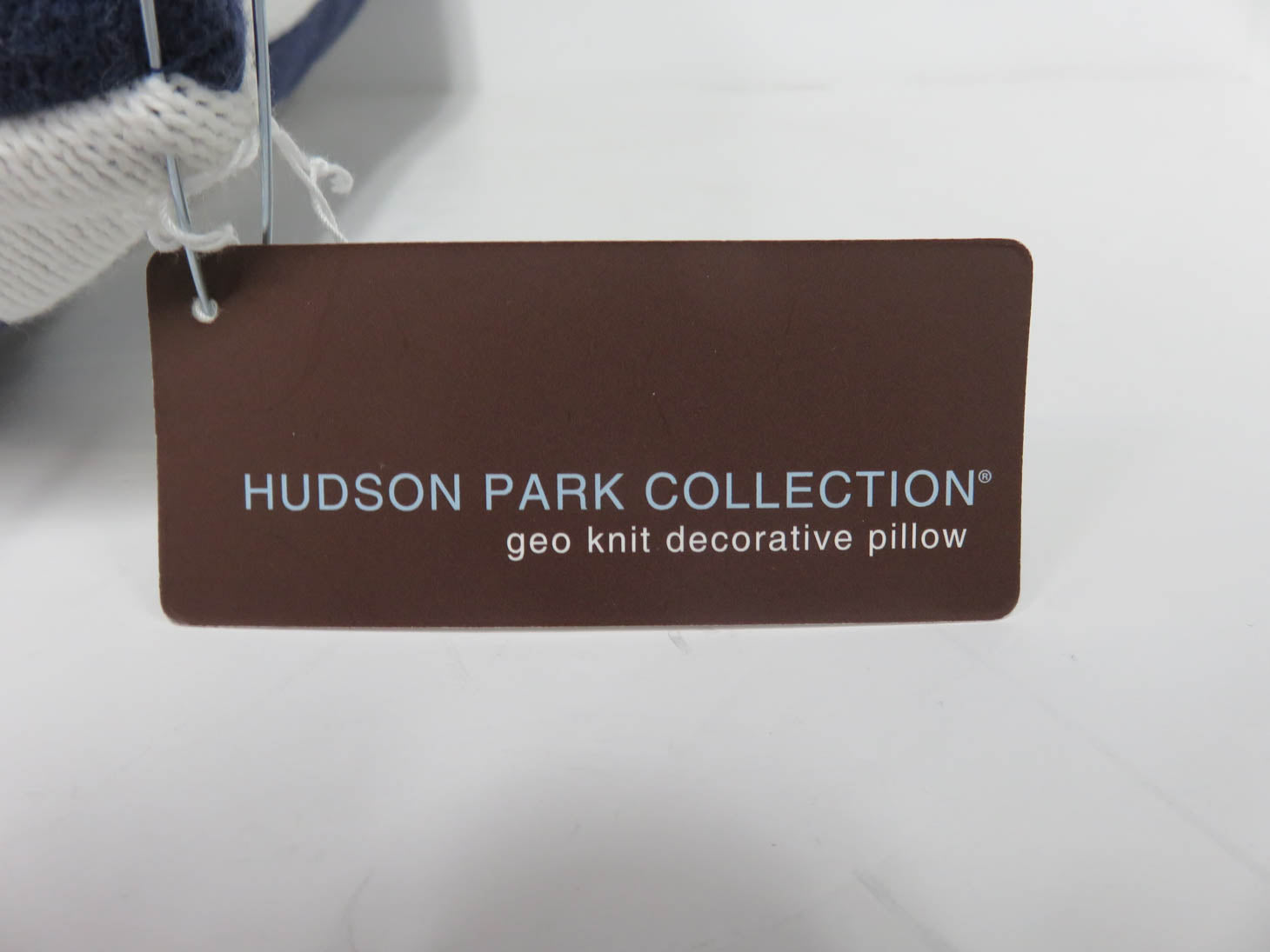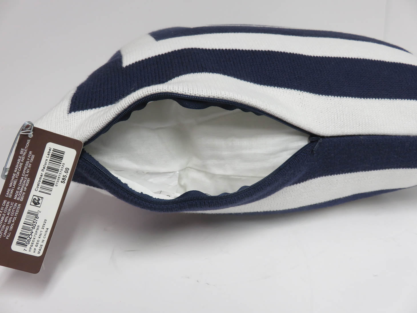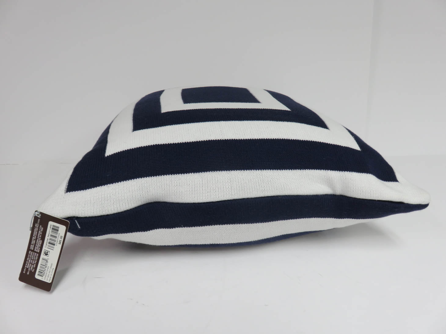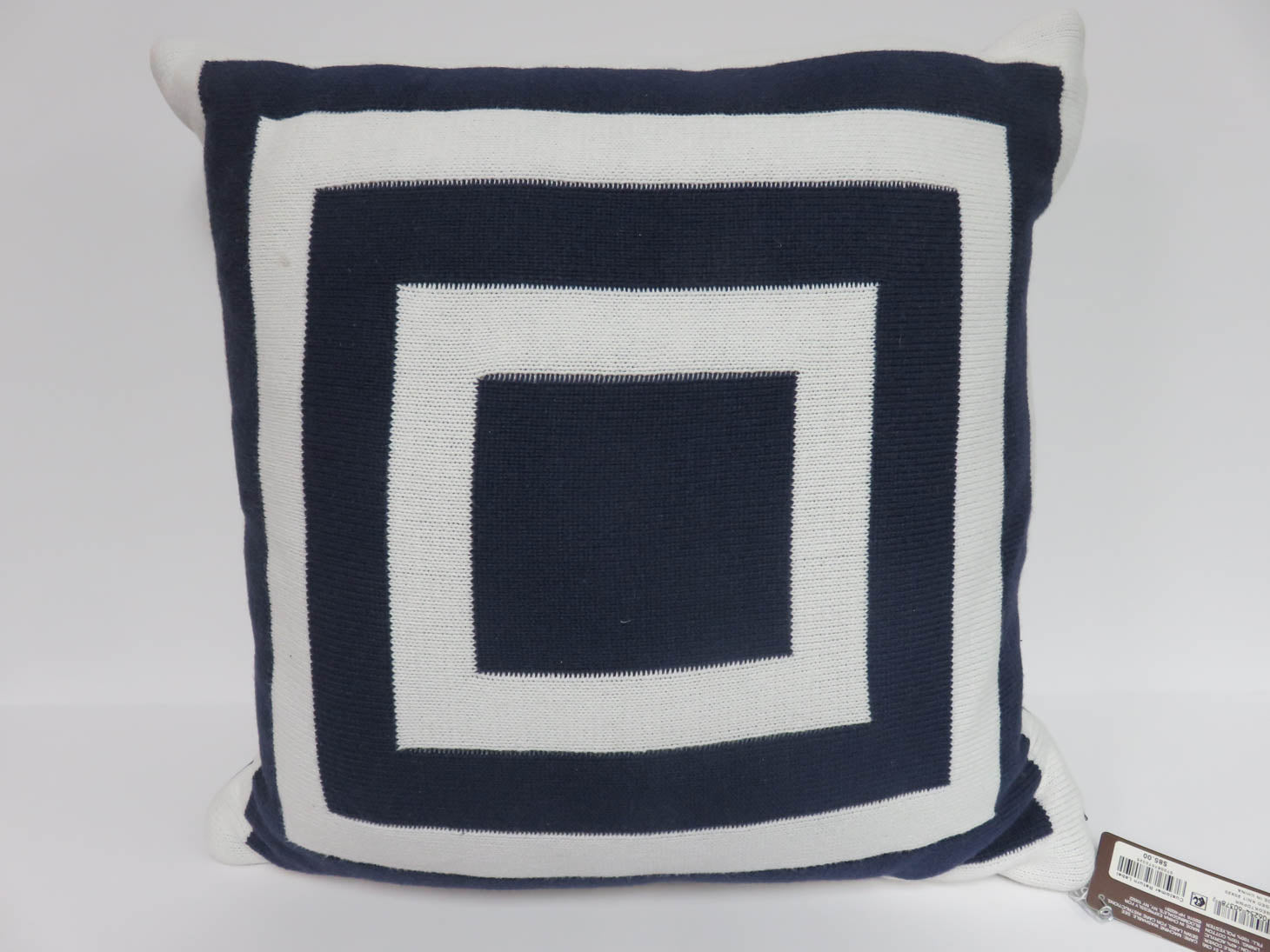 Navy blue and white geometric pattern. Poly-filled with zipper. By Hudson Park.