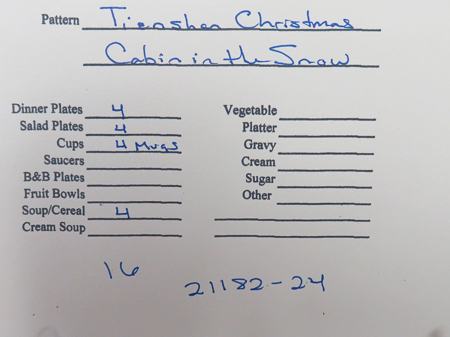 "Cabin in the Snow" Four 4-piece place settings. Blue spongeware design. Discontinued.