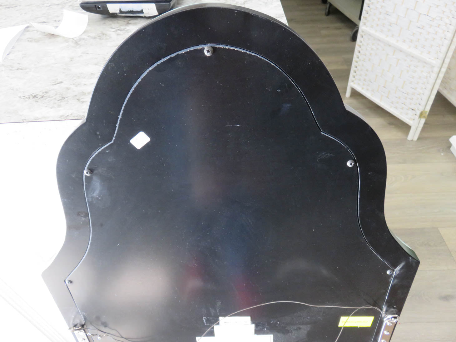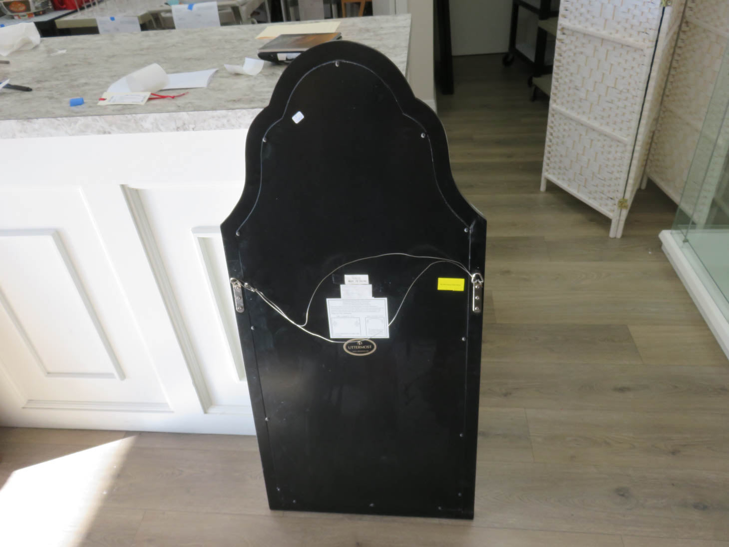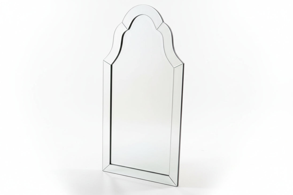 Rectangular with arched top; beveled mirror frame