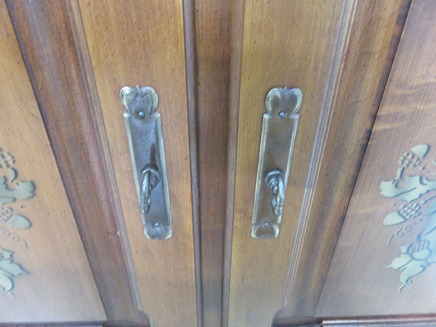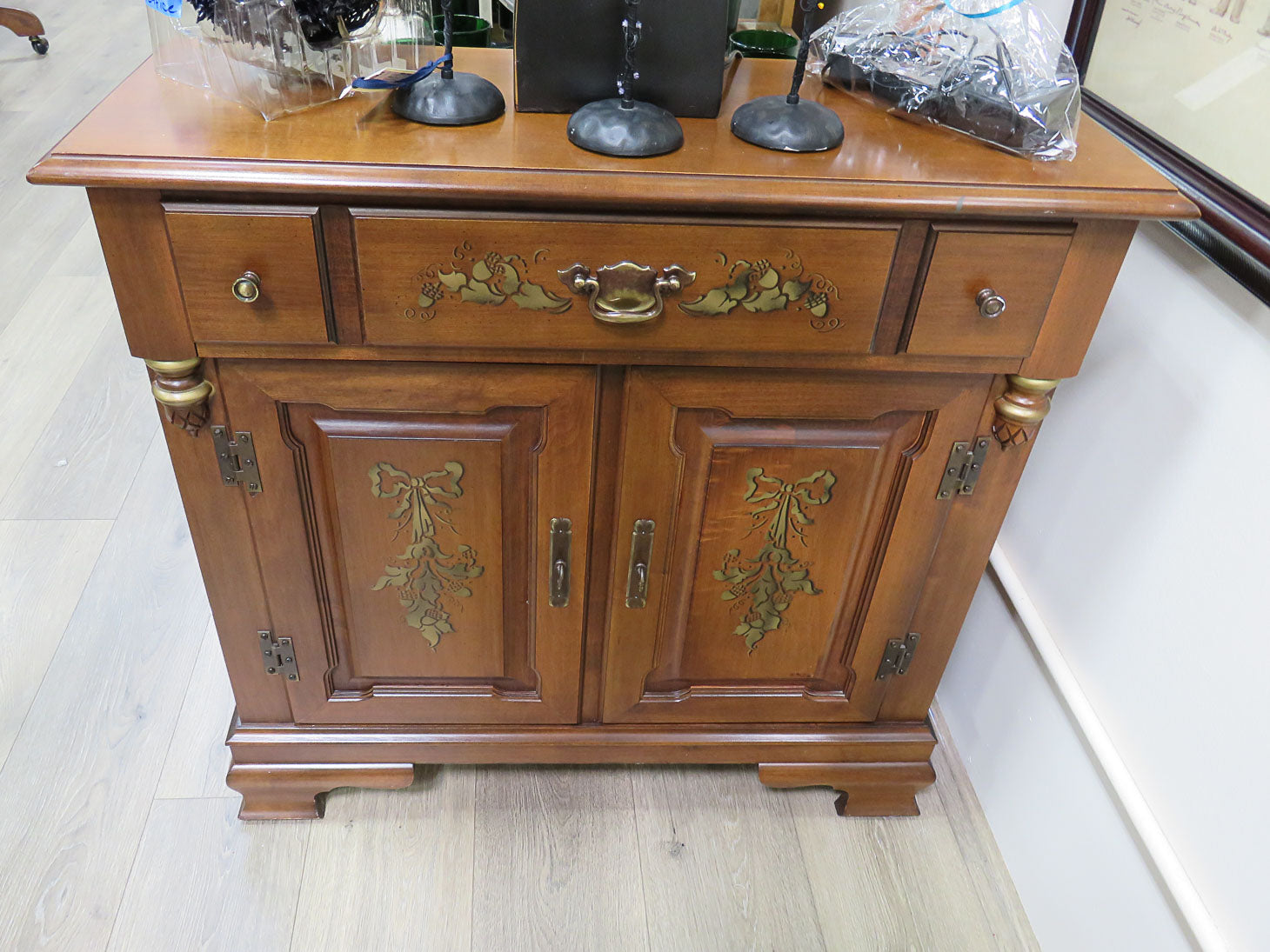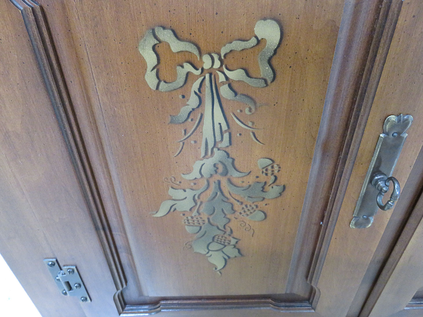 Item Number: 23483-299 Gold stenciled leaves and acorns. 2 doors and 3 drawers. From Pell Chair Co. Young Republic. 32" x 12" x 31.5"