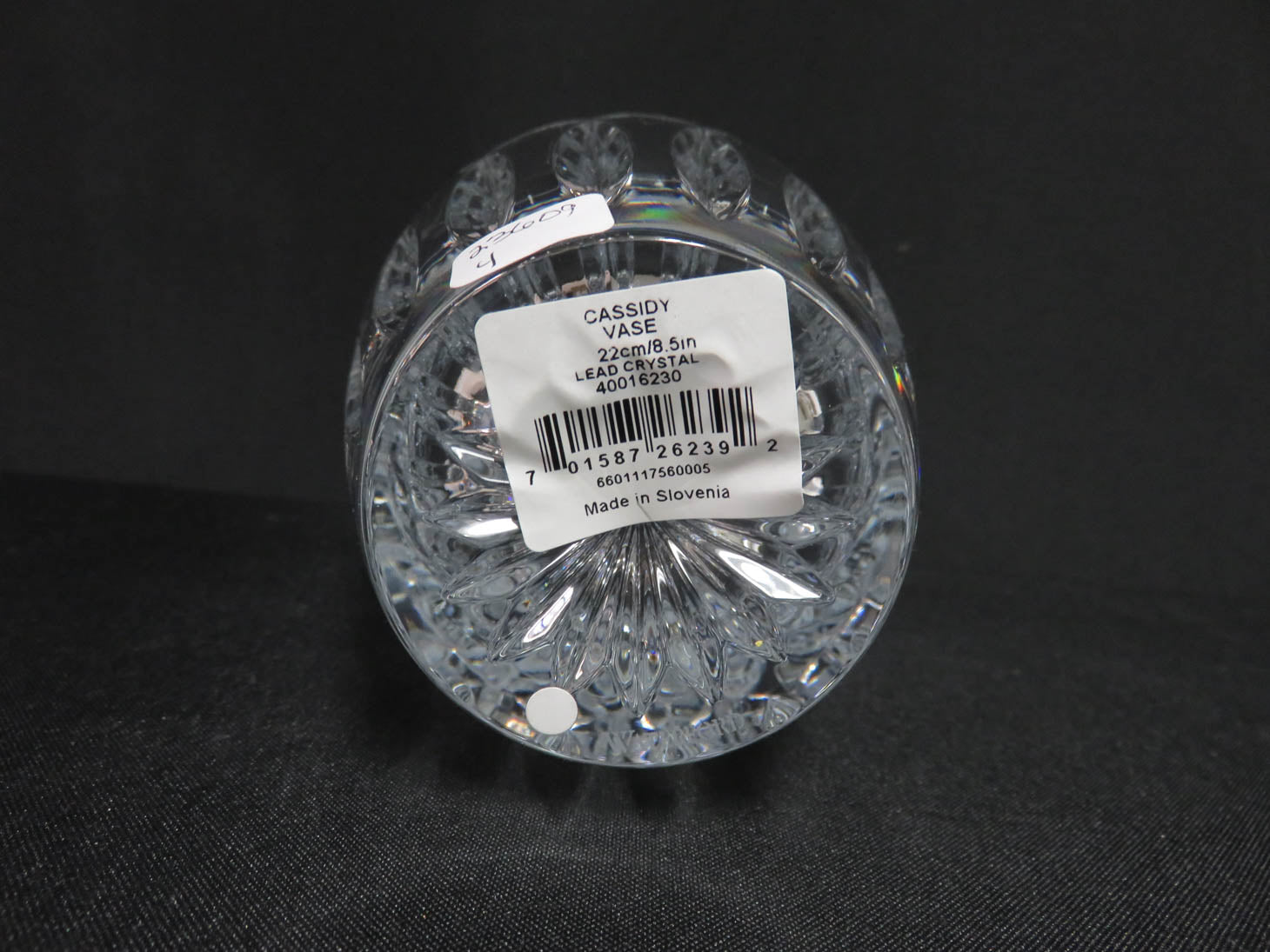 Item Number: 23609-4 "Cassidy" pattern with diamond and wedge cut, original tags still attached 8.5" H