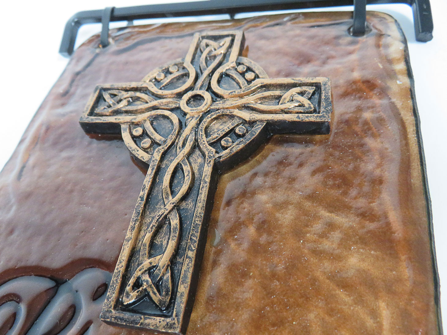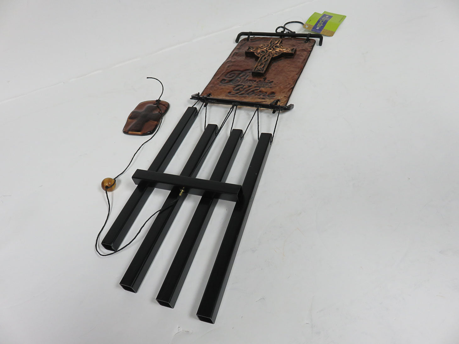 Bless This Home, glass panel and metal wind chimes and hook.