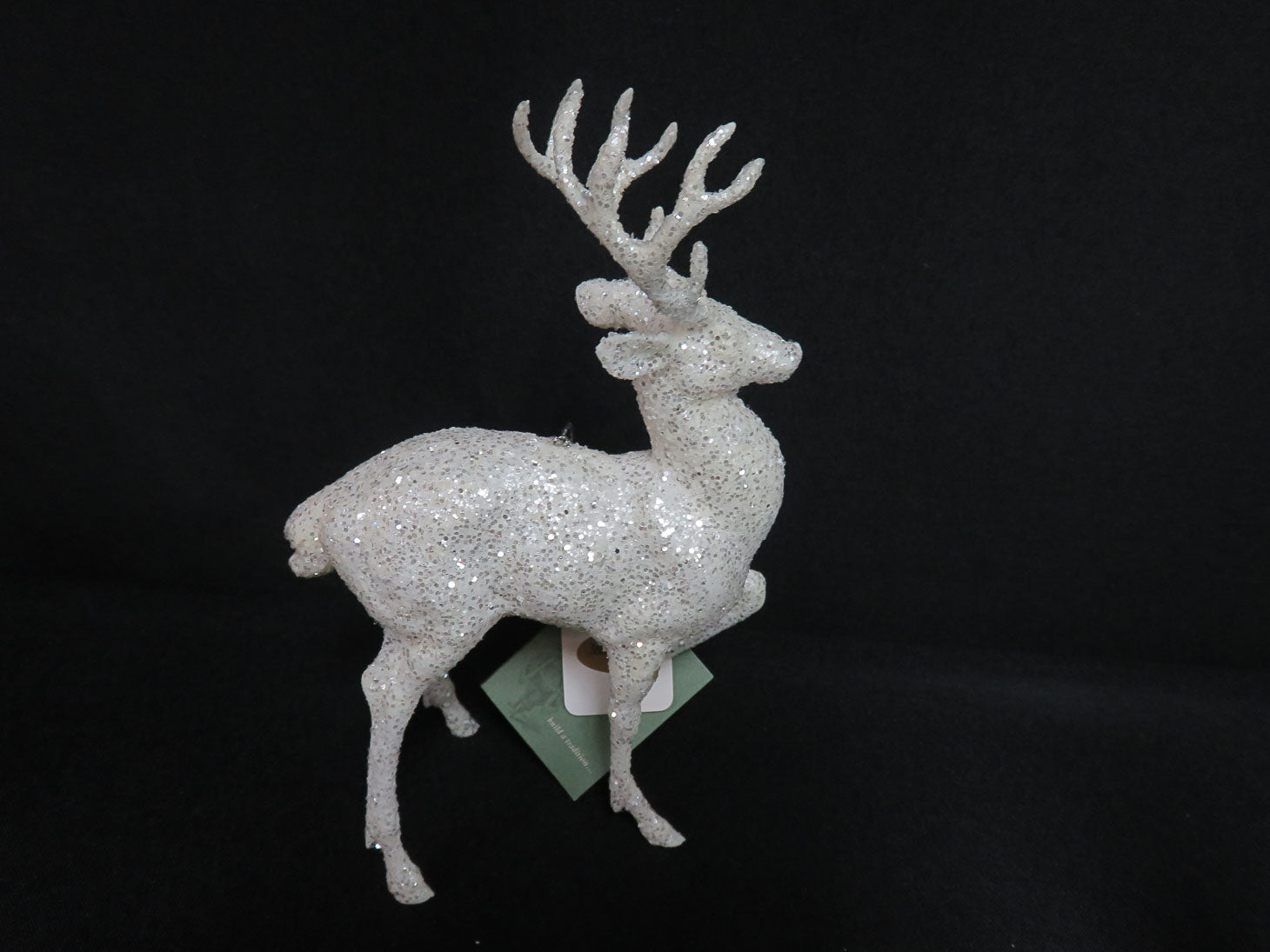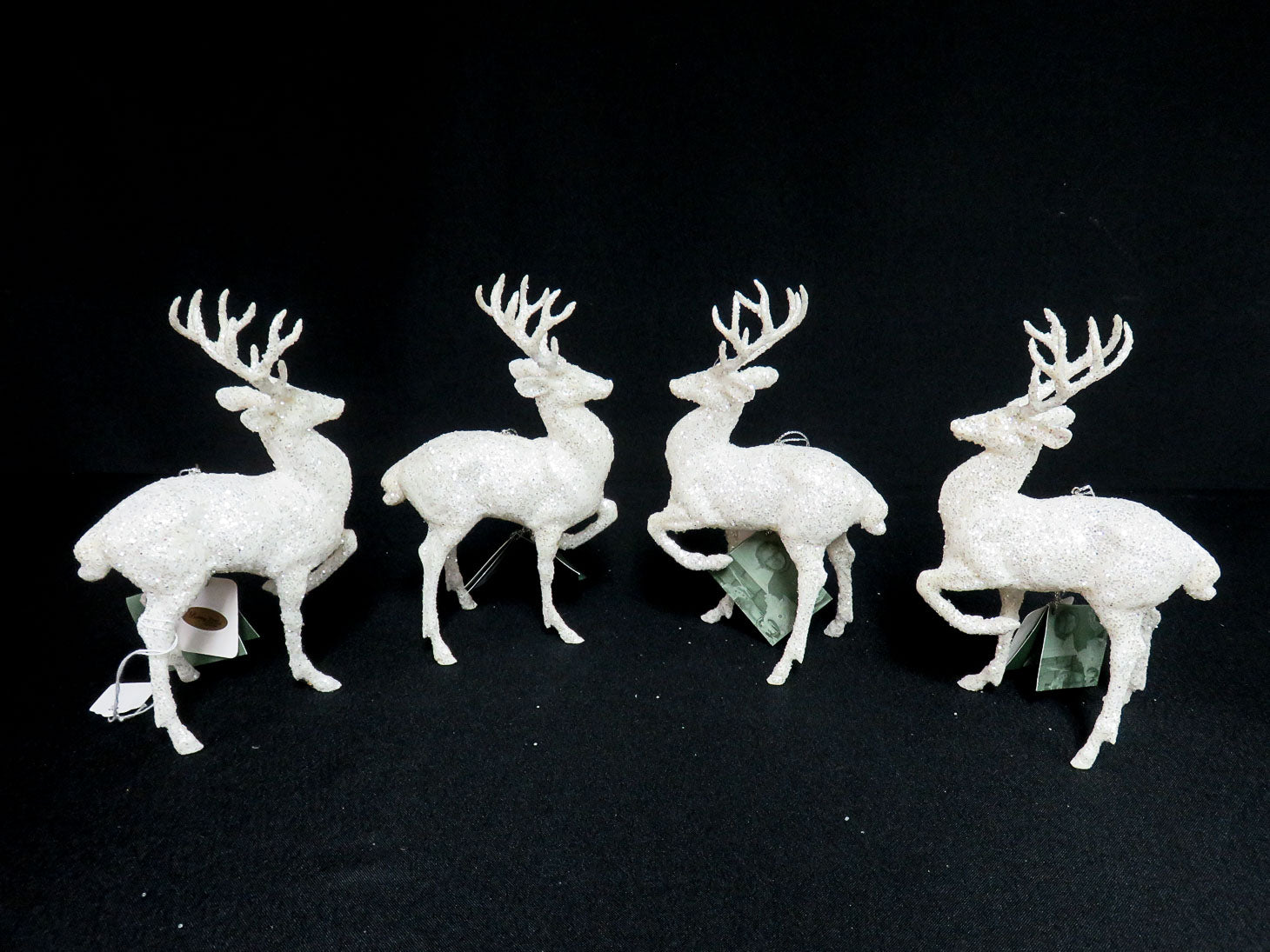 Set of 4, standing deer, white with glitter.