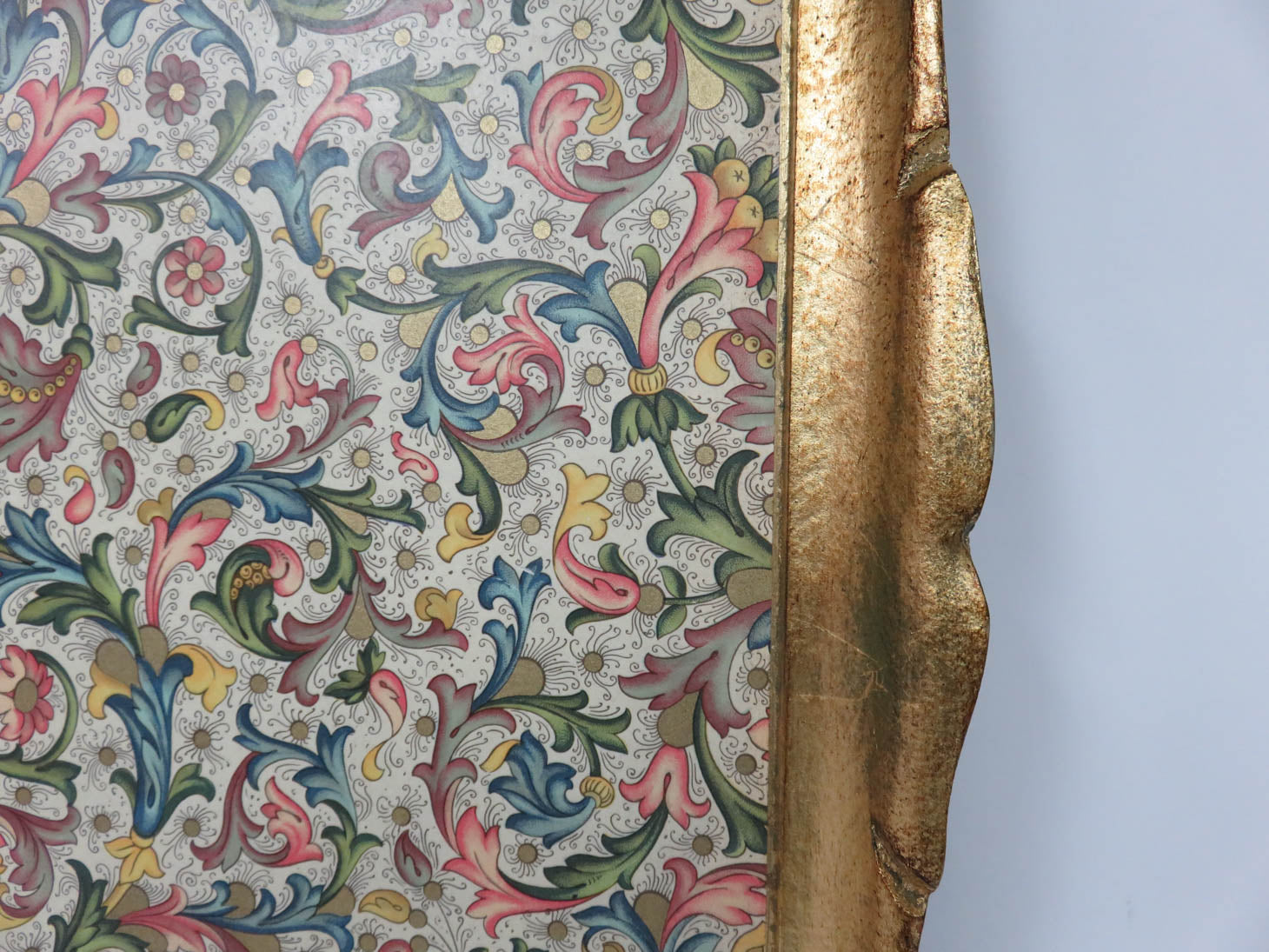 Antique gold edge, green, pink and blue floral design