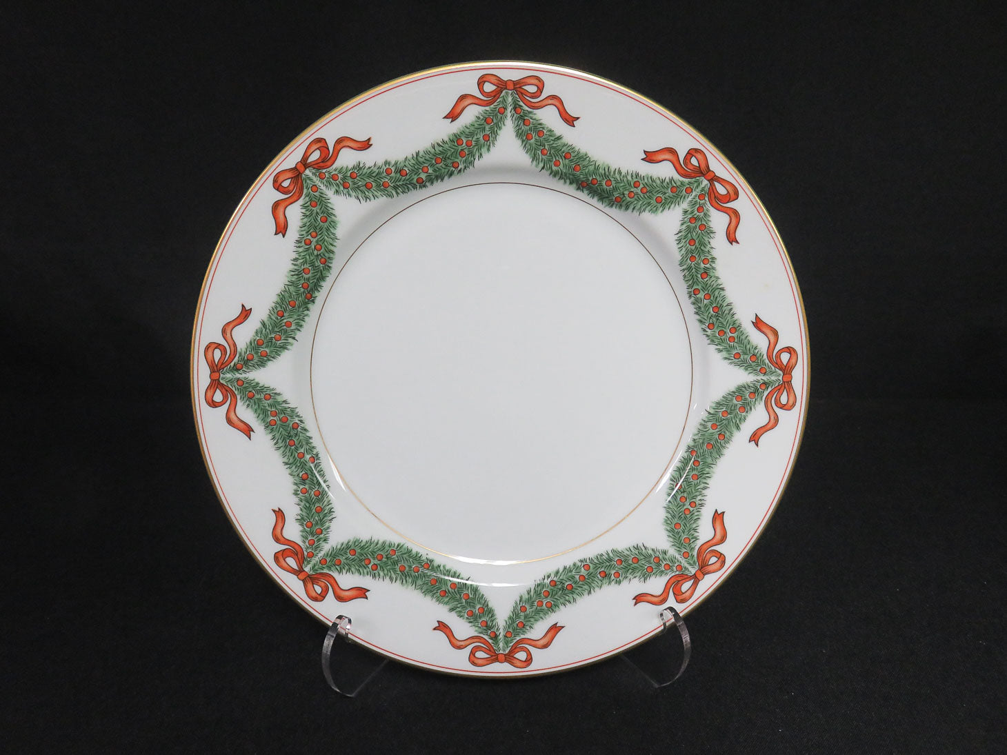 Set of 8, Made exclusively for Marshall Fields. White with green boughs and red bows.
