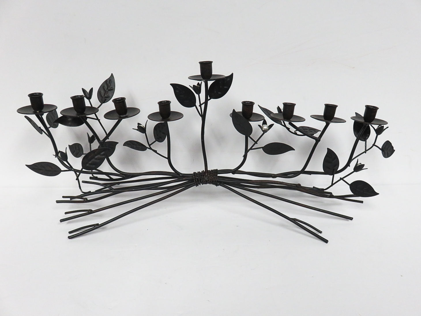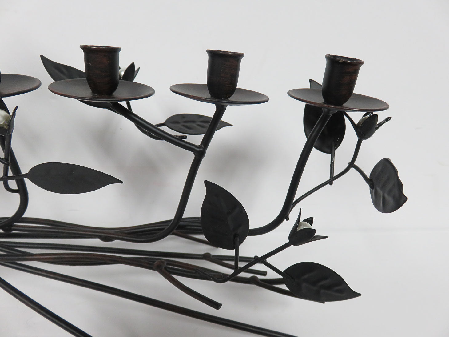 Distressed black/brown bundled branches with leaves, pearl flower centers